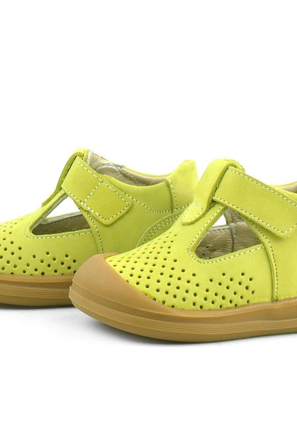 Rakerplus Shaun Hakiki Deri Sarı Cırtlı Anatomik Bebek Sandalet
