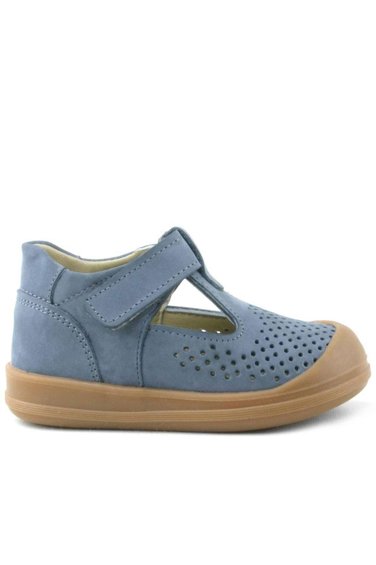 Rakerplus Shaun Hakiki Deri Mavi Cırtlı Anatomik Bebek Sandalet