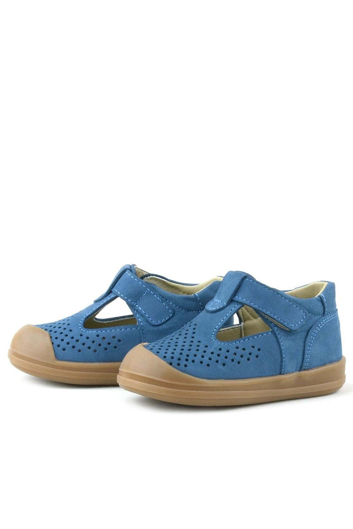 Rakerplus Shaun Hakiki Deri Saks Mavi Cırtlı Anatomik Bebek Sandalet