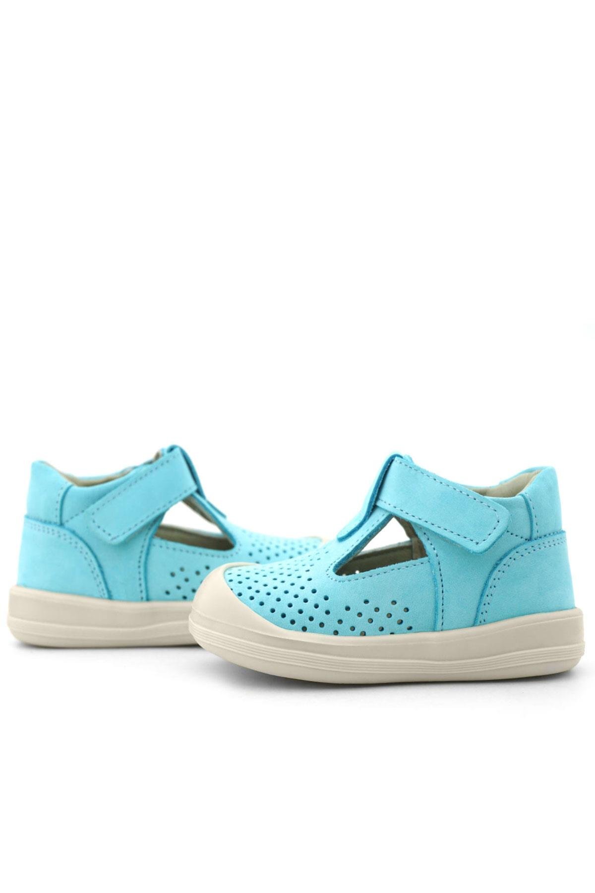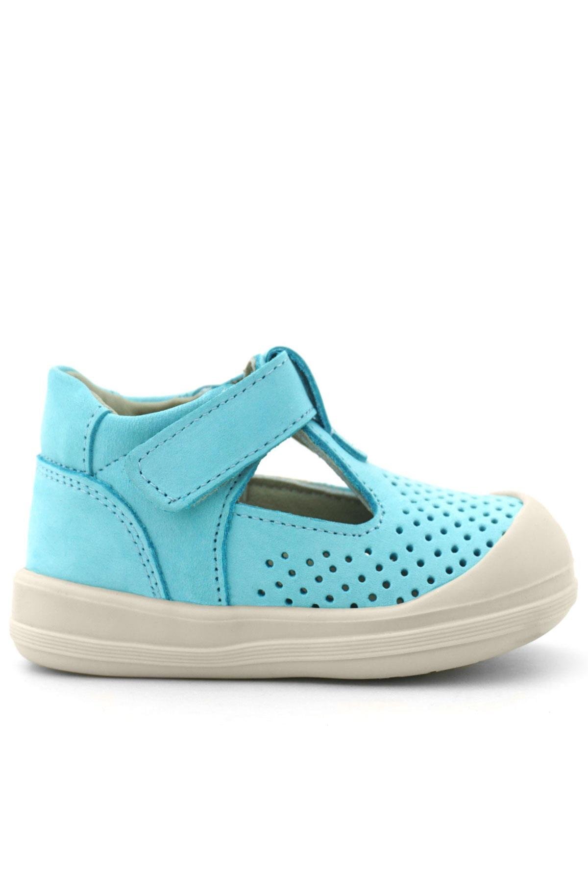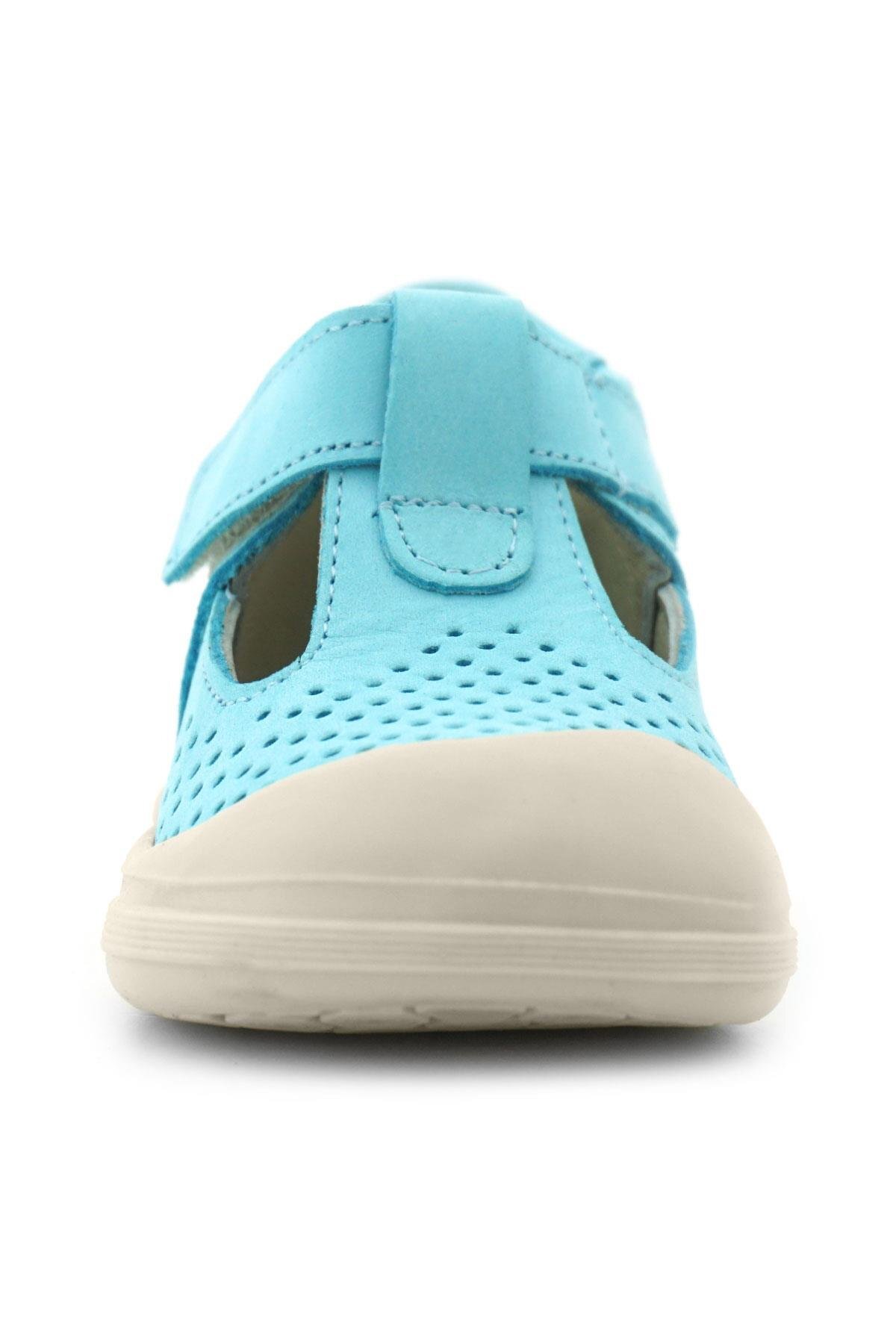 Rakerplus Shaun Hakiki Deri Mavi Beyaz Cırtlı Anatomik Bebek Sandalet