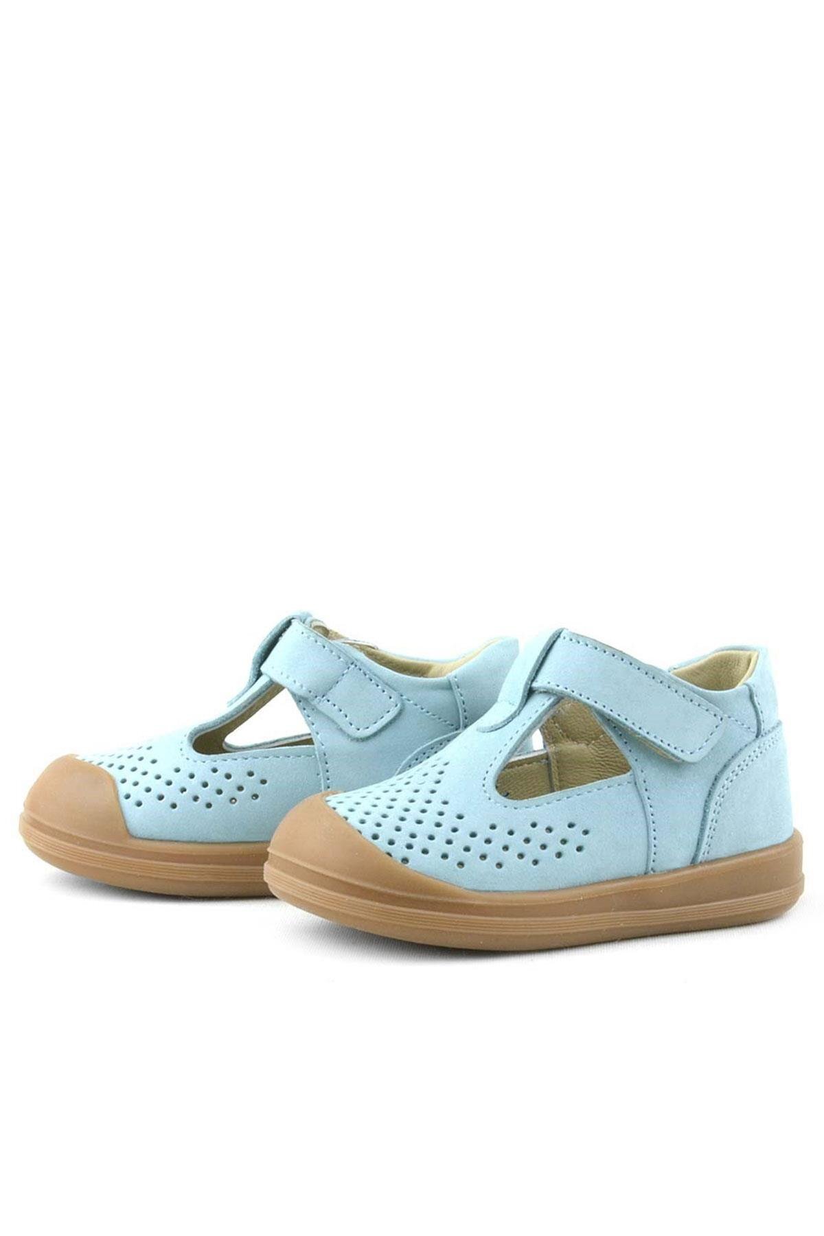Rakerplus Shaun Hakiki Deri Mavi Cırtlı Anatomik Bebek Sandalet