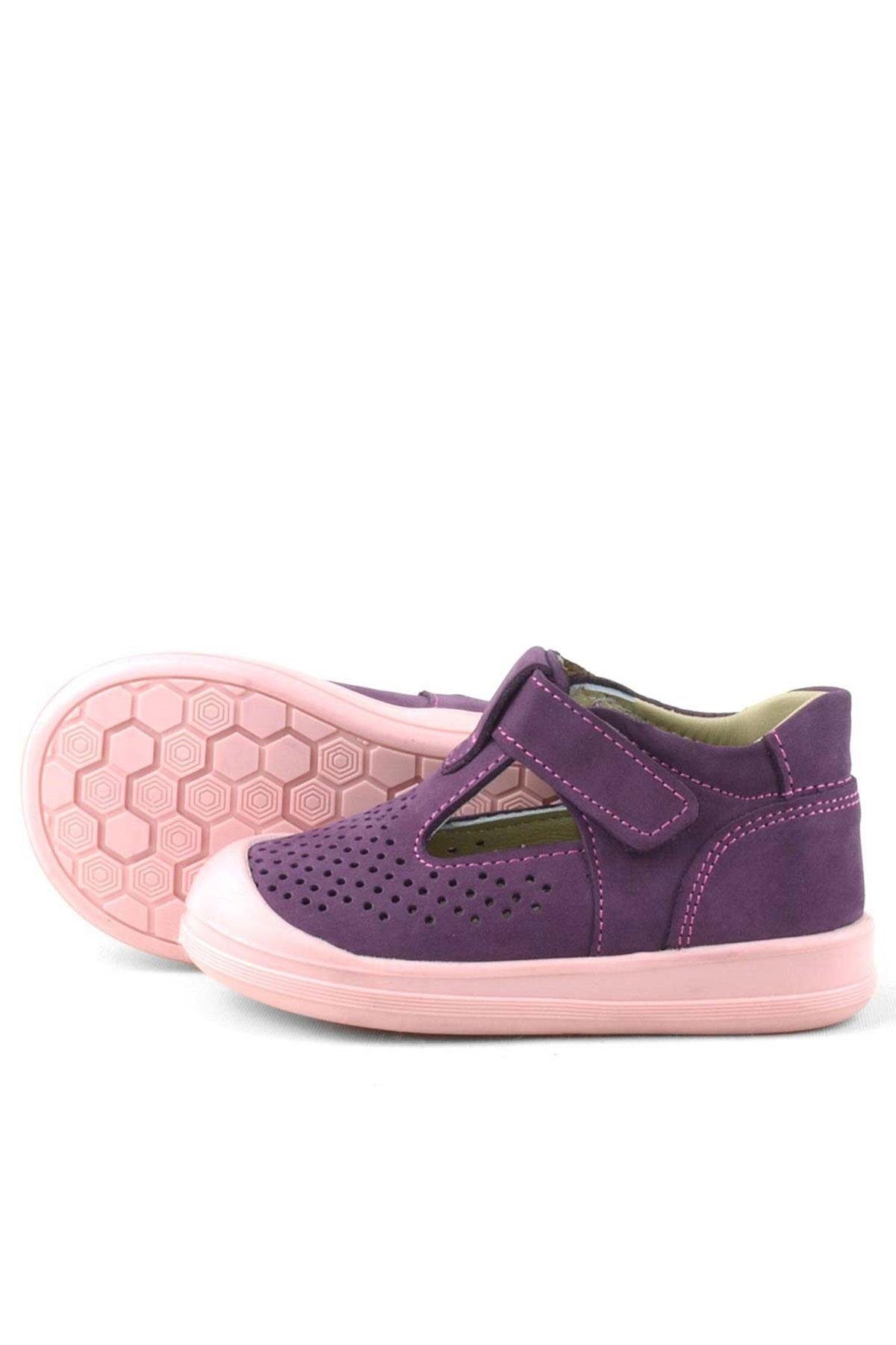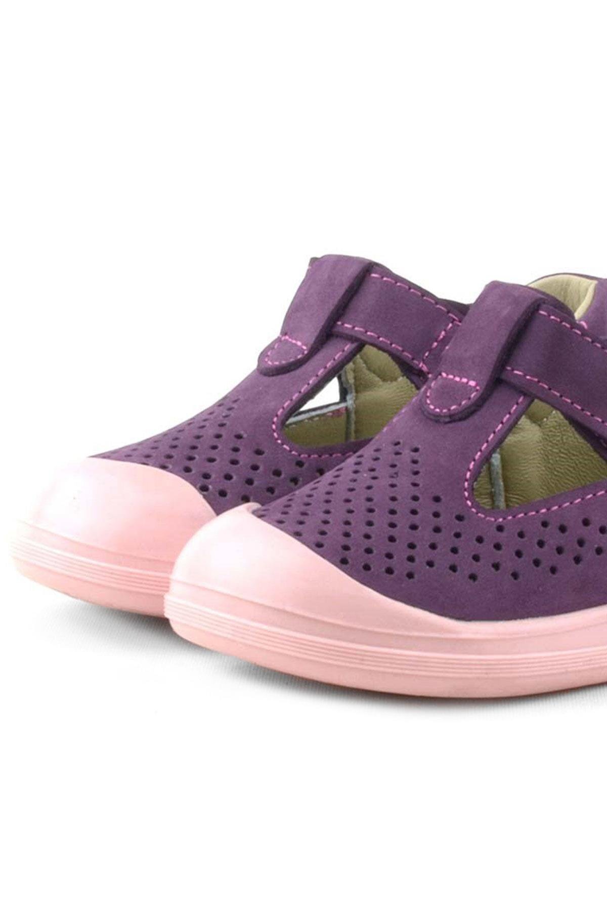 Rakerplus Shaun Hakiki Deri Mor Cırtlı Anatomik Bebek Sandalet