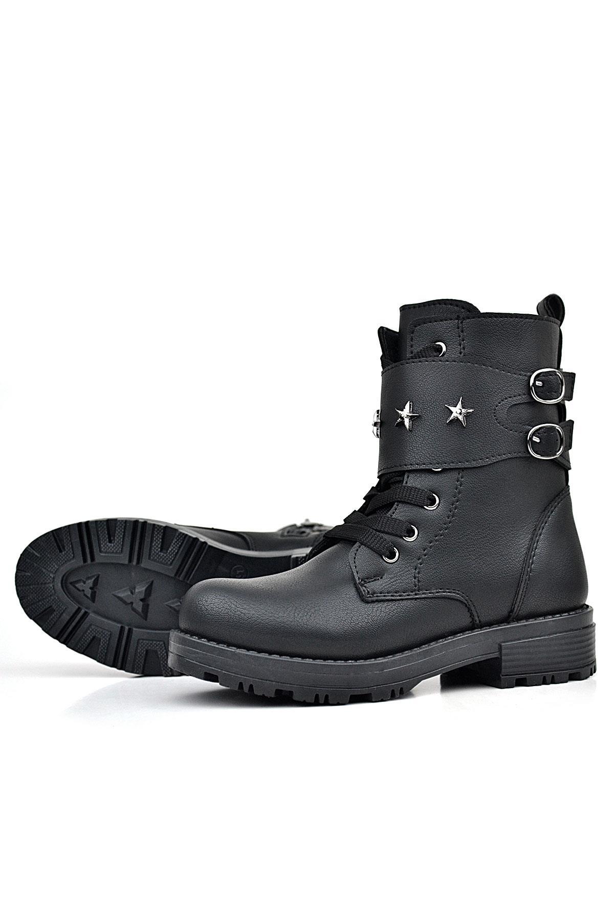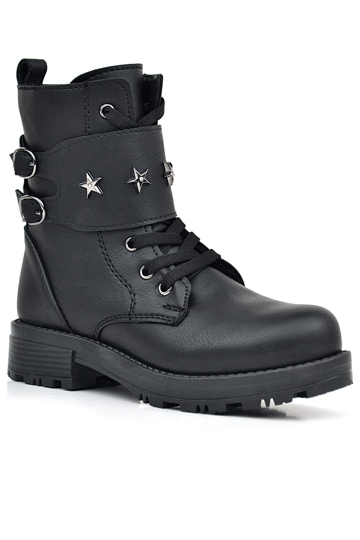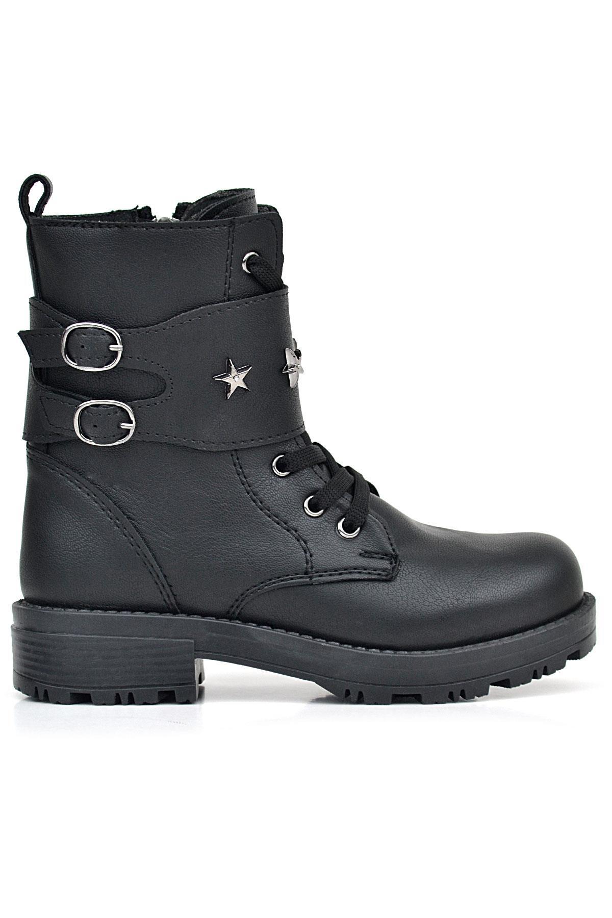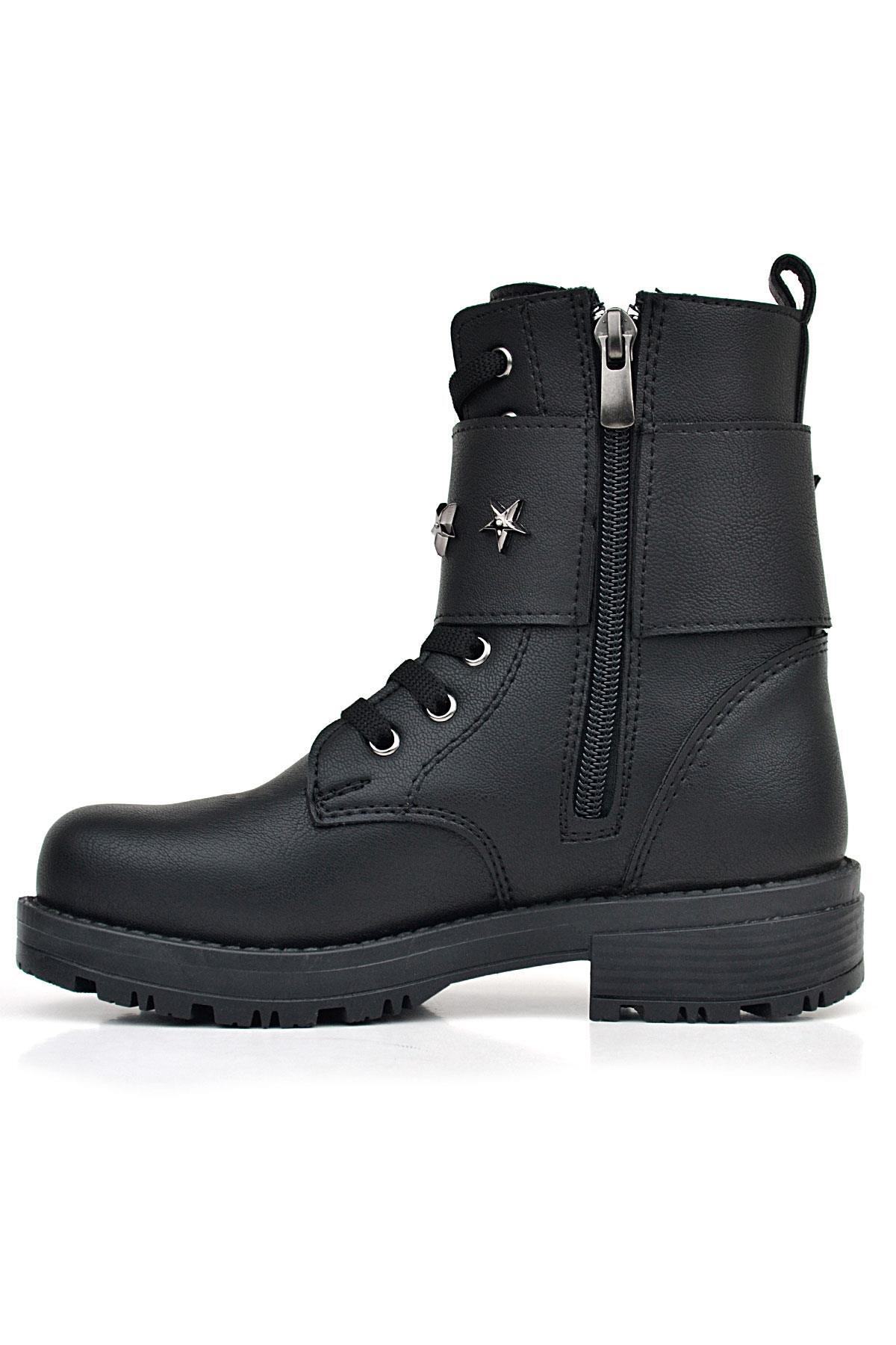 حذاء بناتي أسود من راكر بلاس برباط وسحاب وتفاصيل نجوم