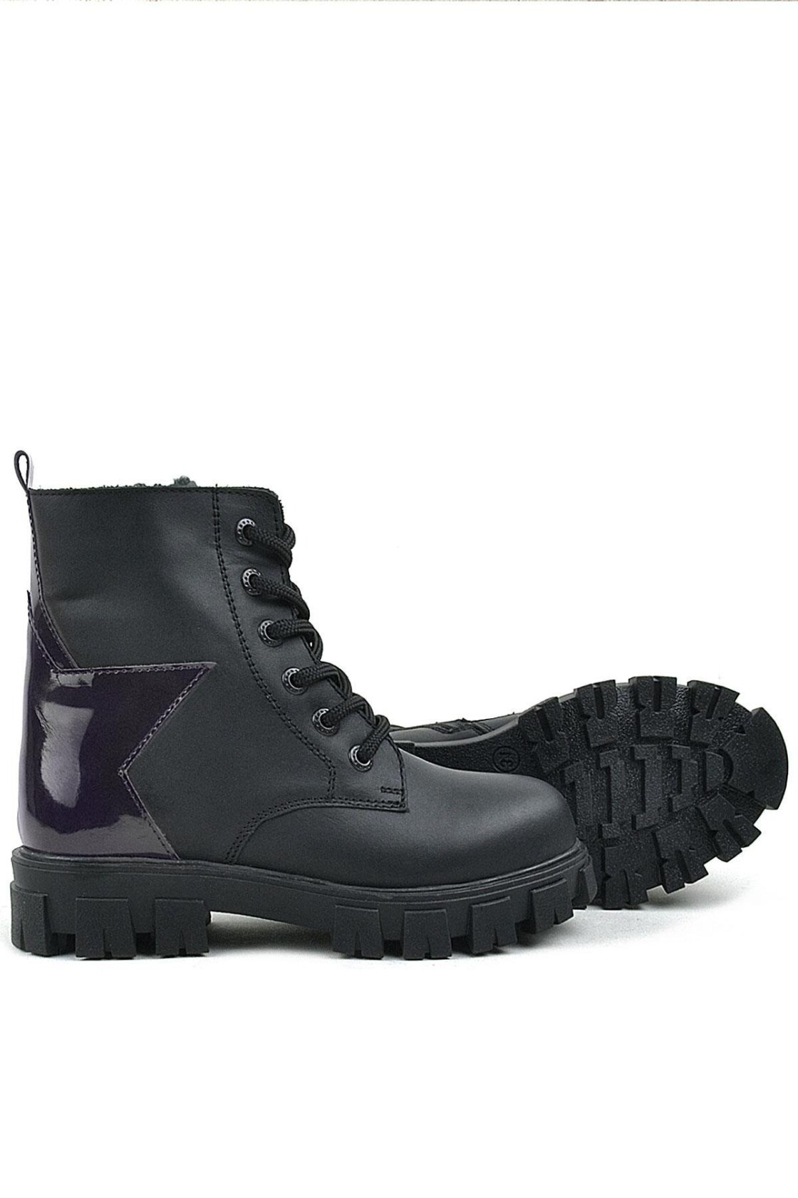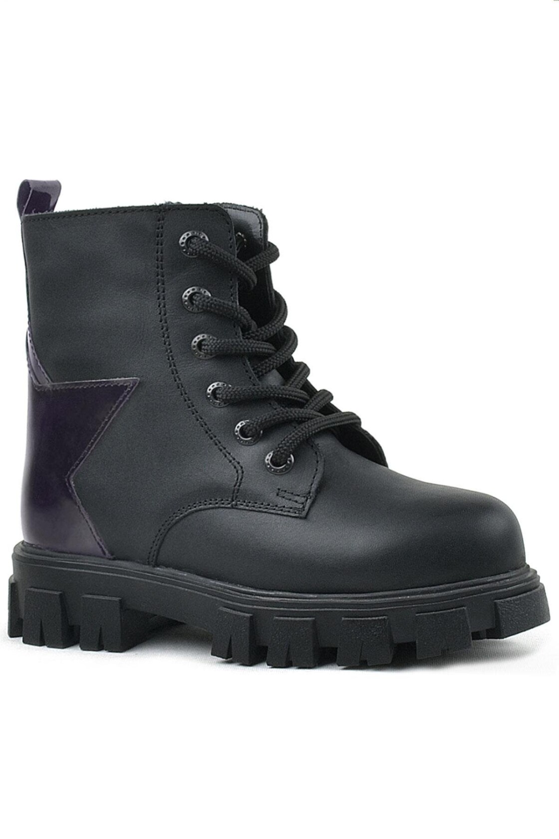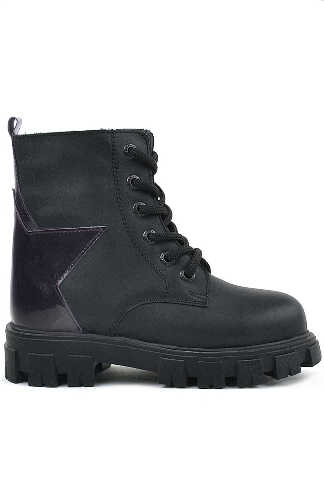 Rakerplus Siyah Hakiki Deri Platin Yıldız Detaylı Kız Çocuk Bot