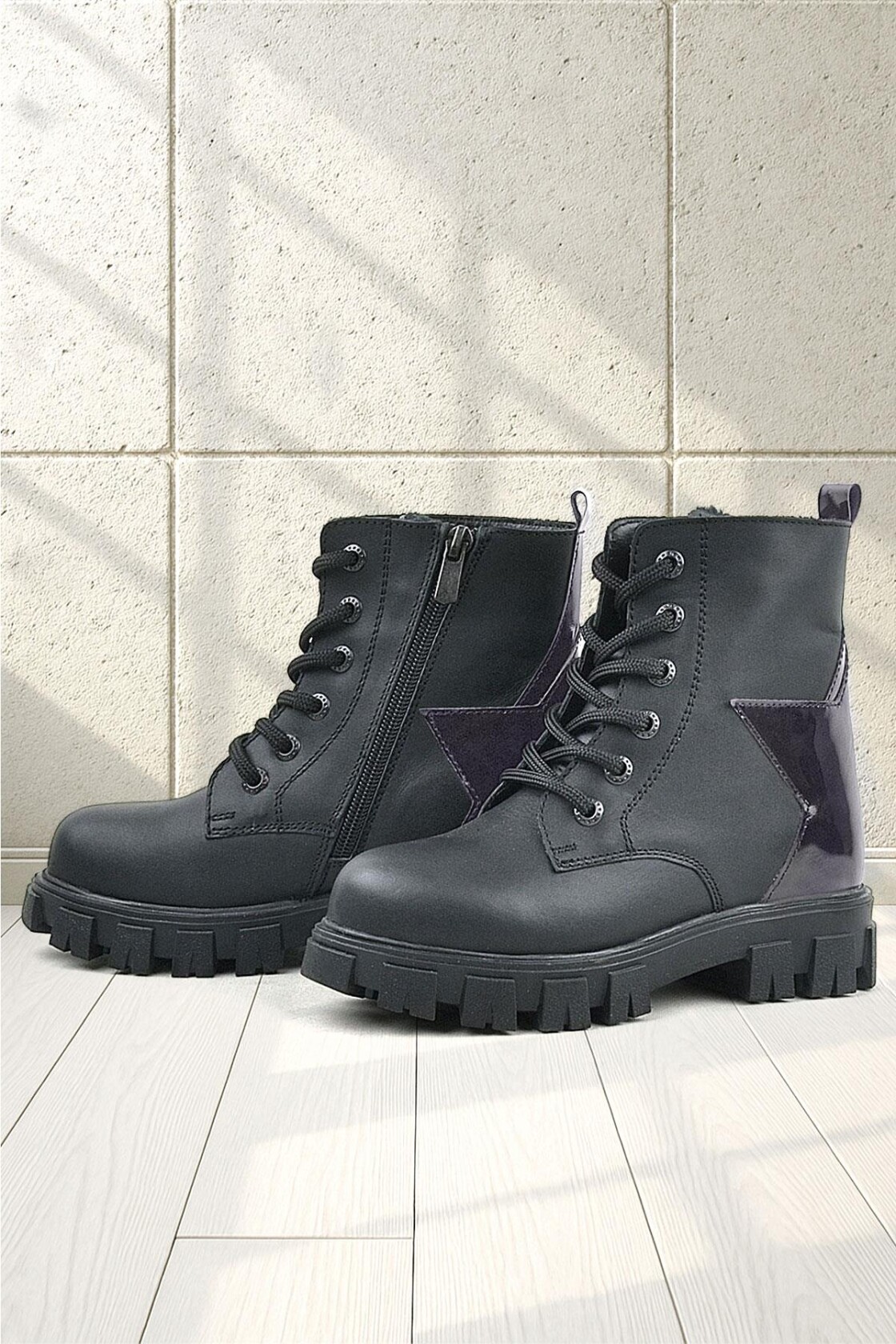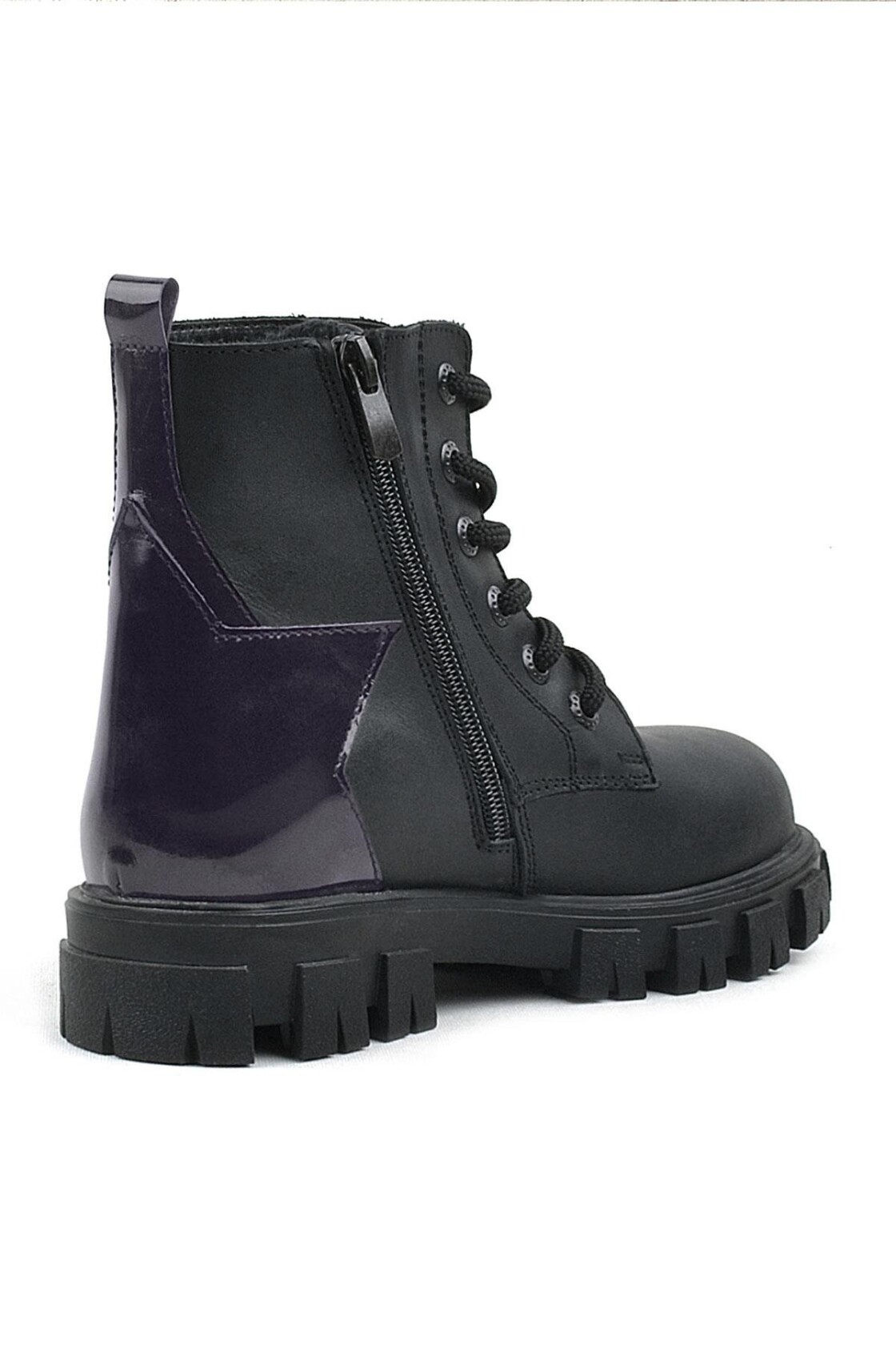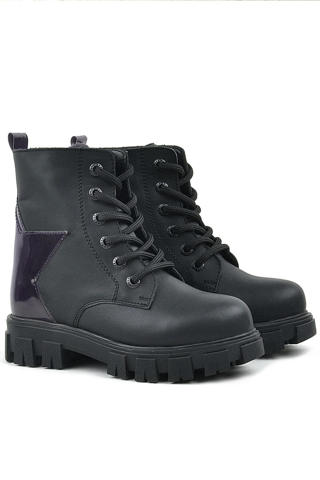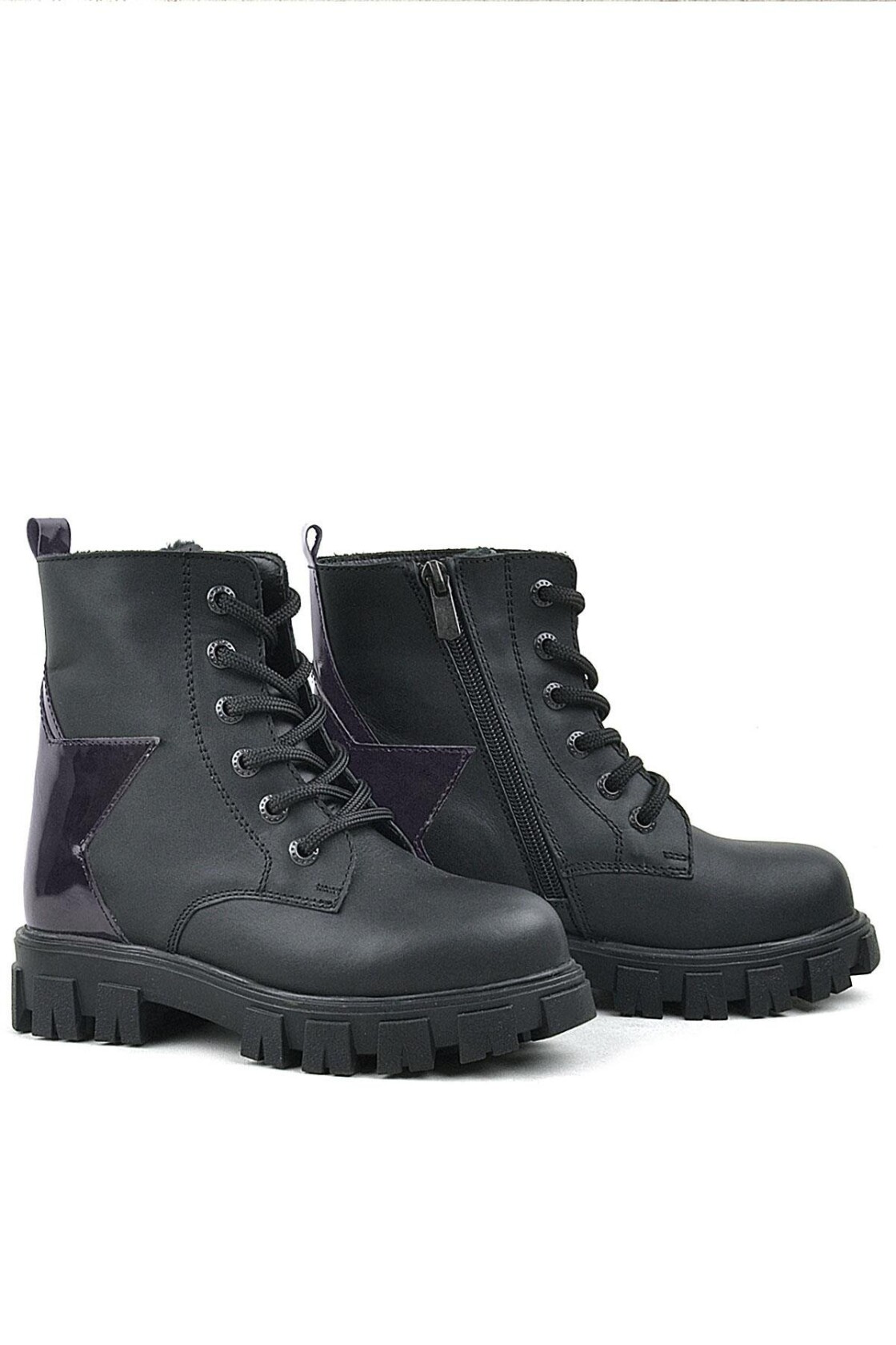 Rakerplus Siyah Hakiki Deri Platin Yıldız Detaylı Kız Çocuk Bot