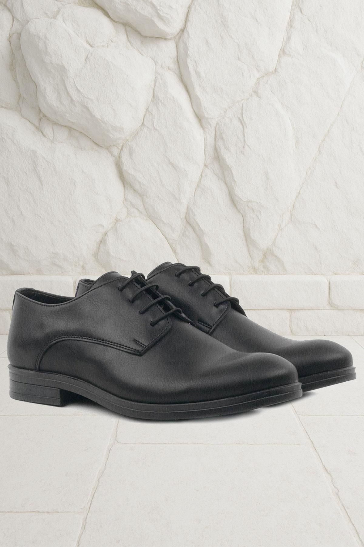 حذاء أكسفورد للأطفال من راكر بلاس أسود غير لامع برباط للمدرسة