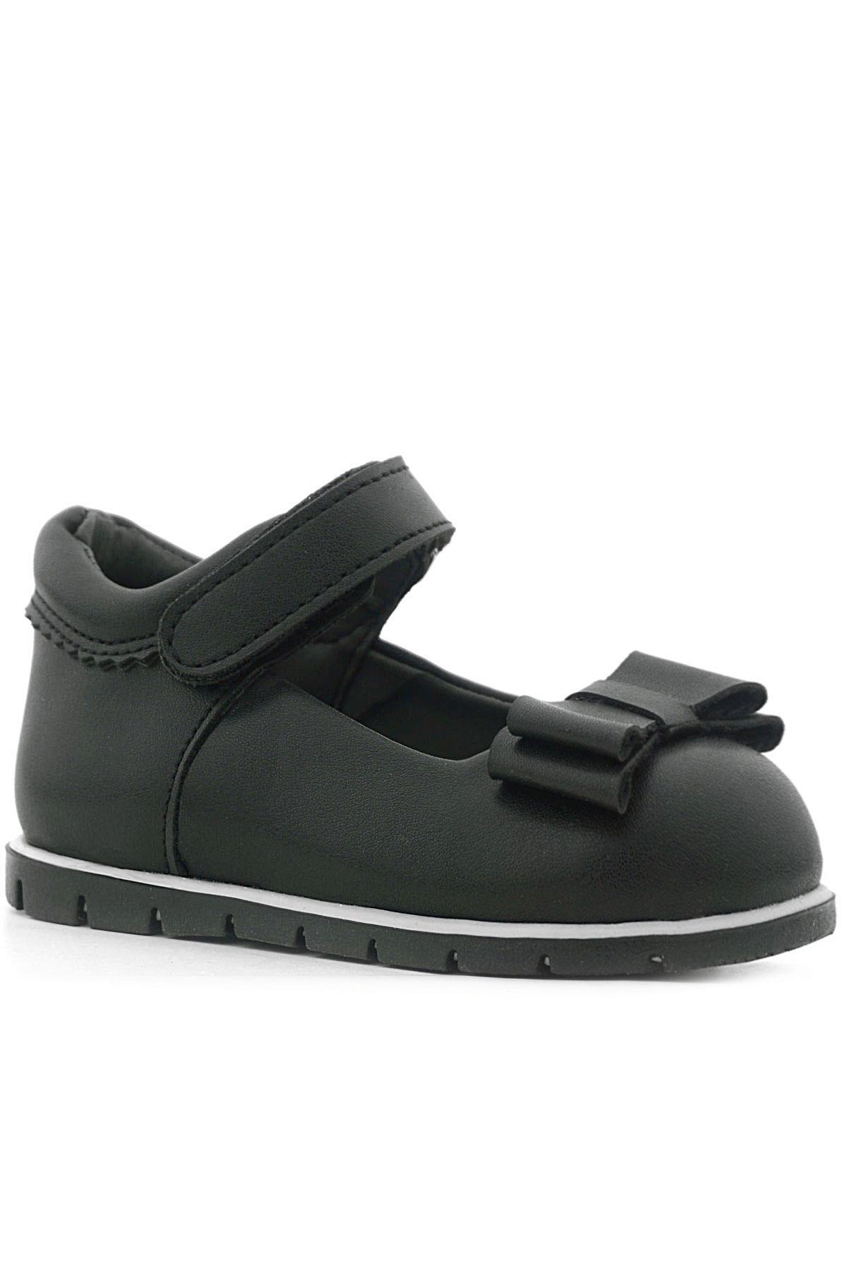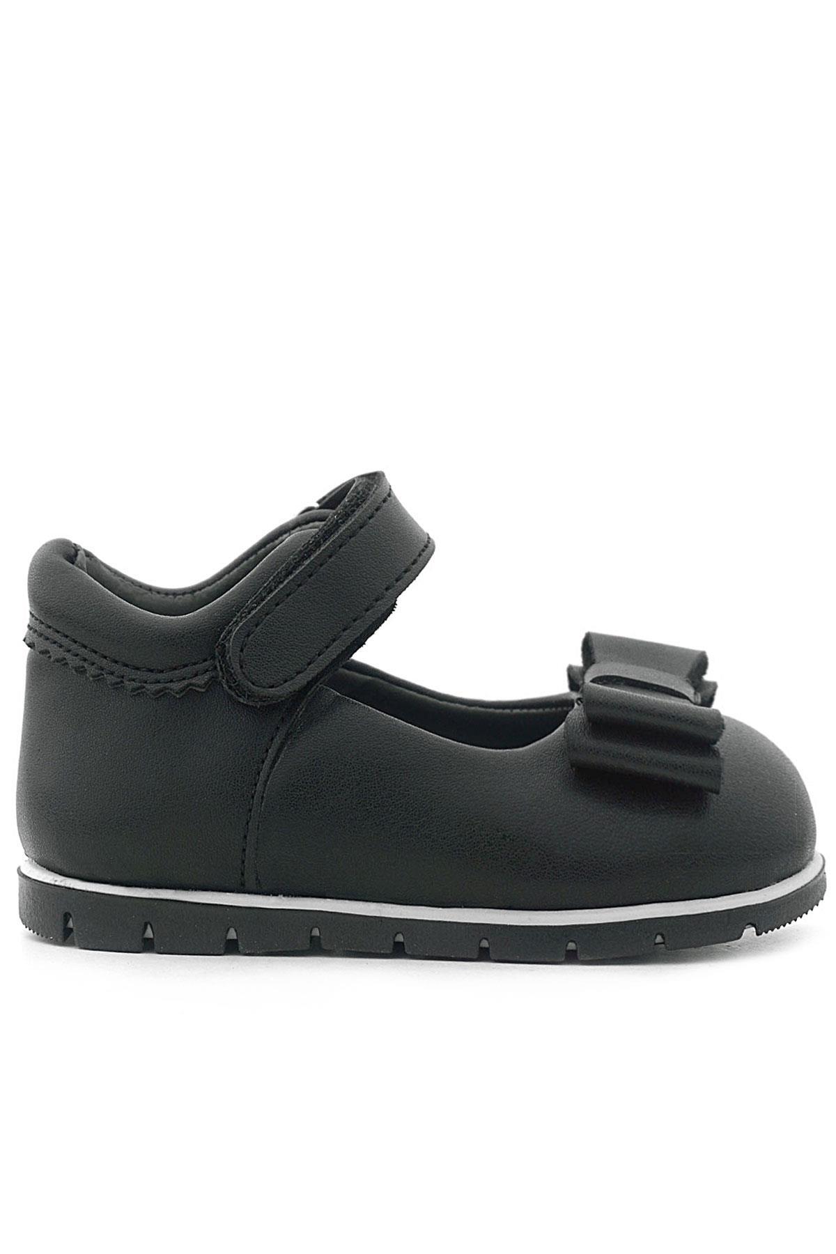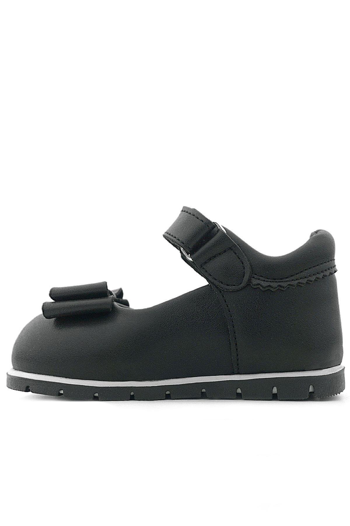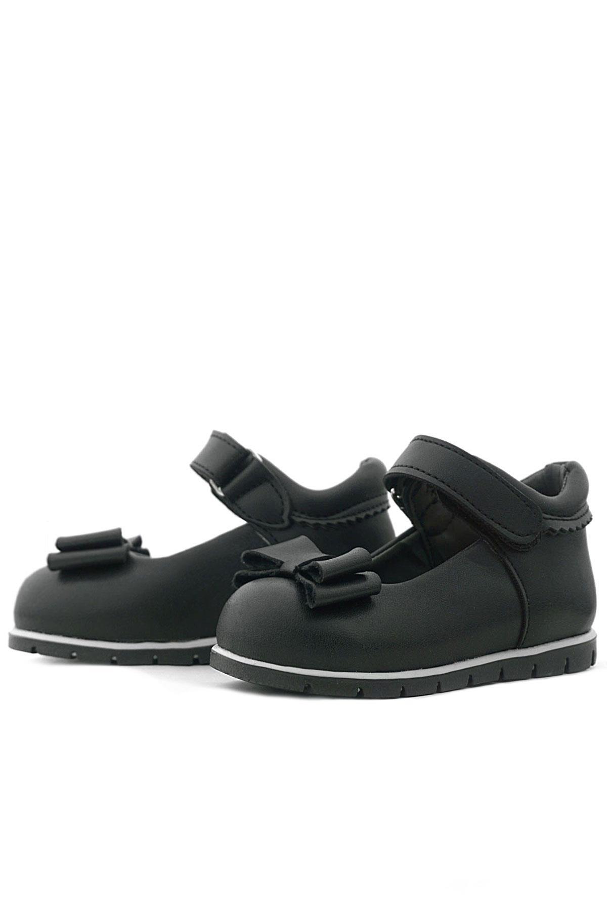 Rakerplus Siyah Mat Fiyonklu Kız Bebek Babet Ayakkabı