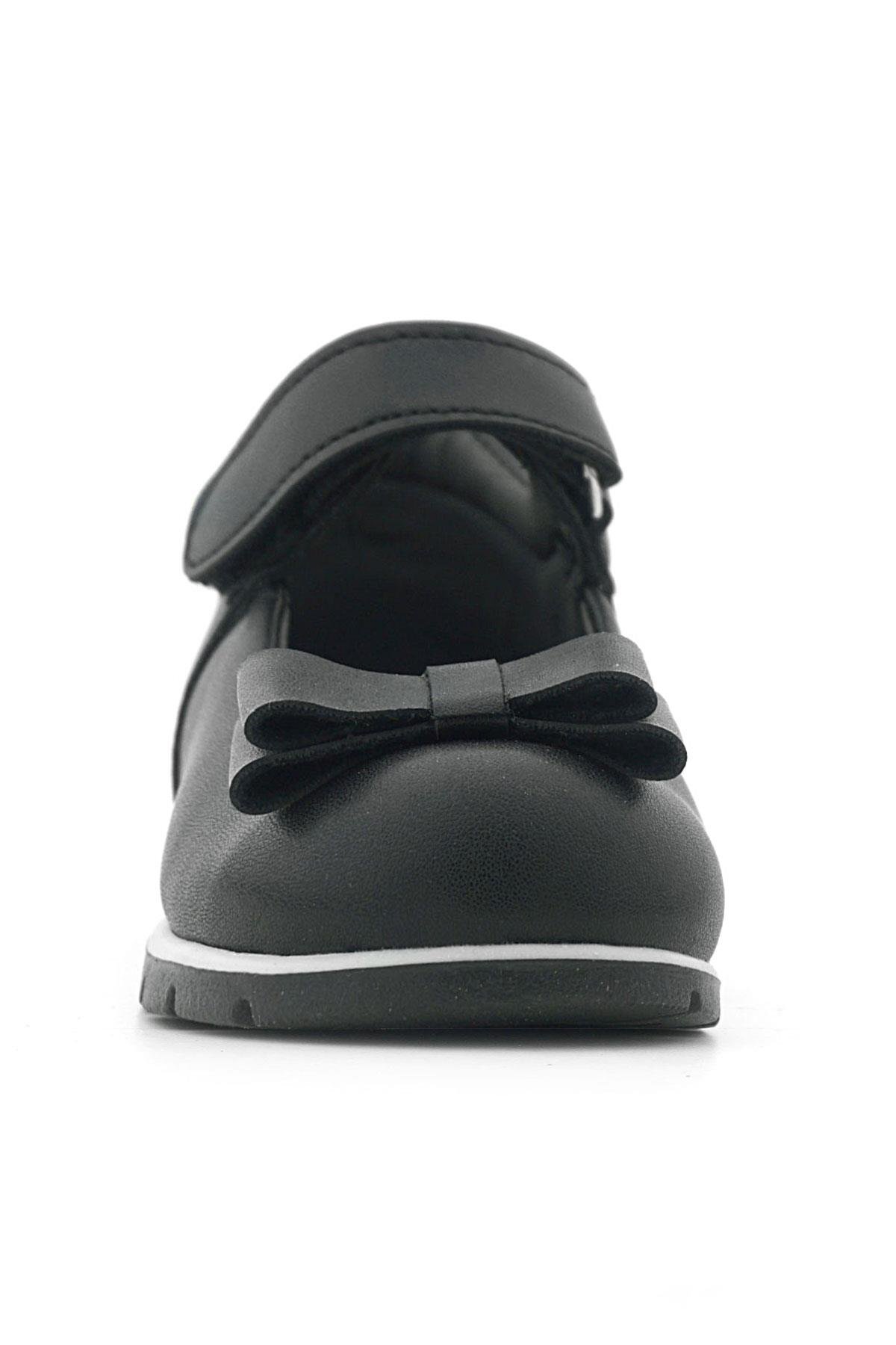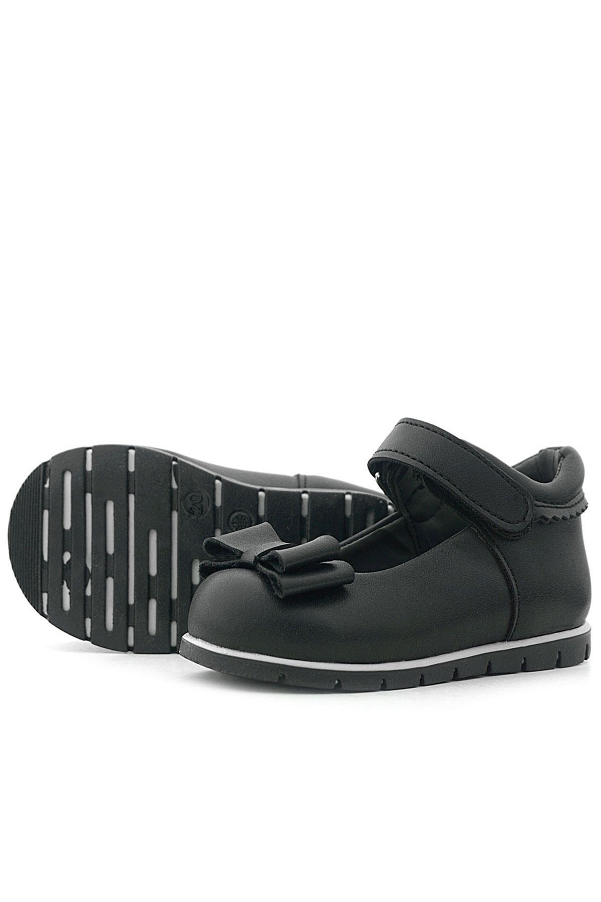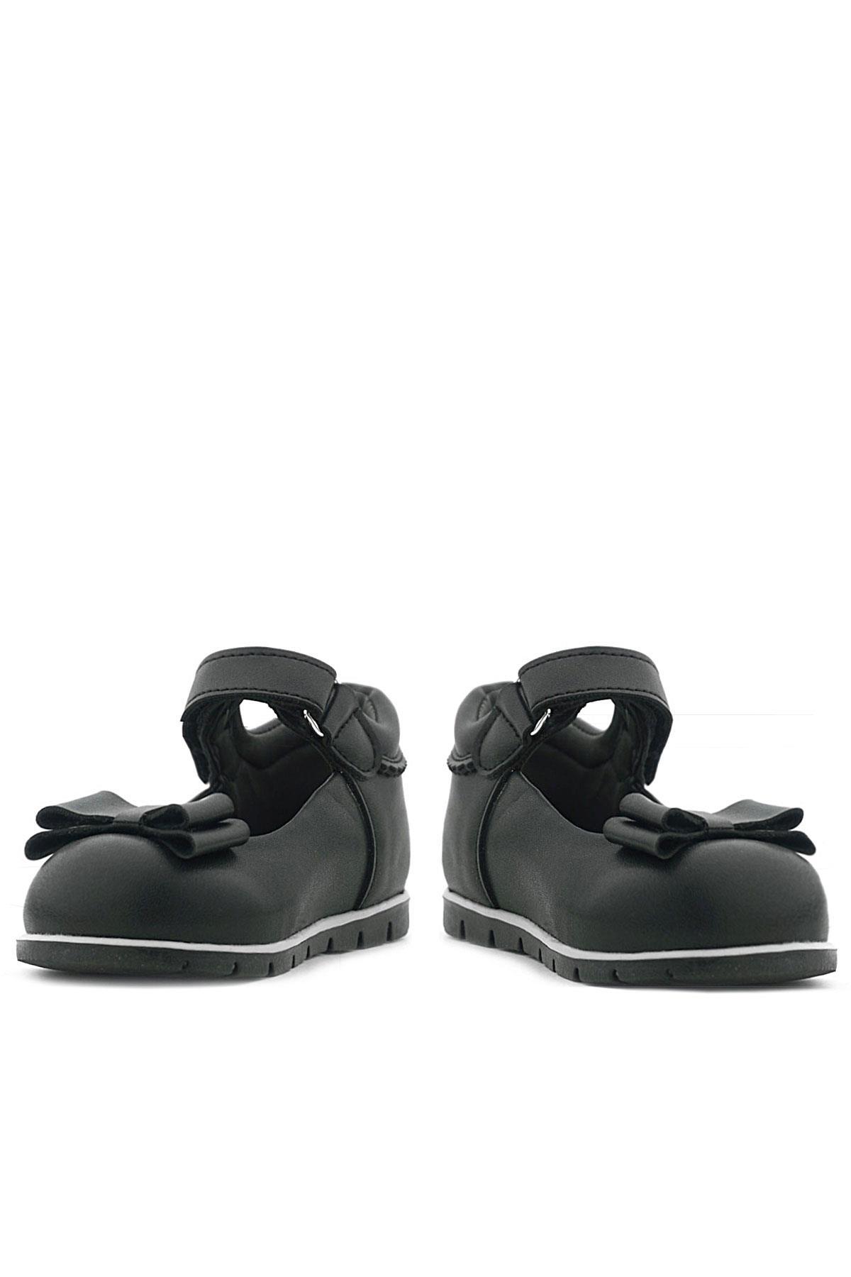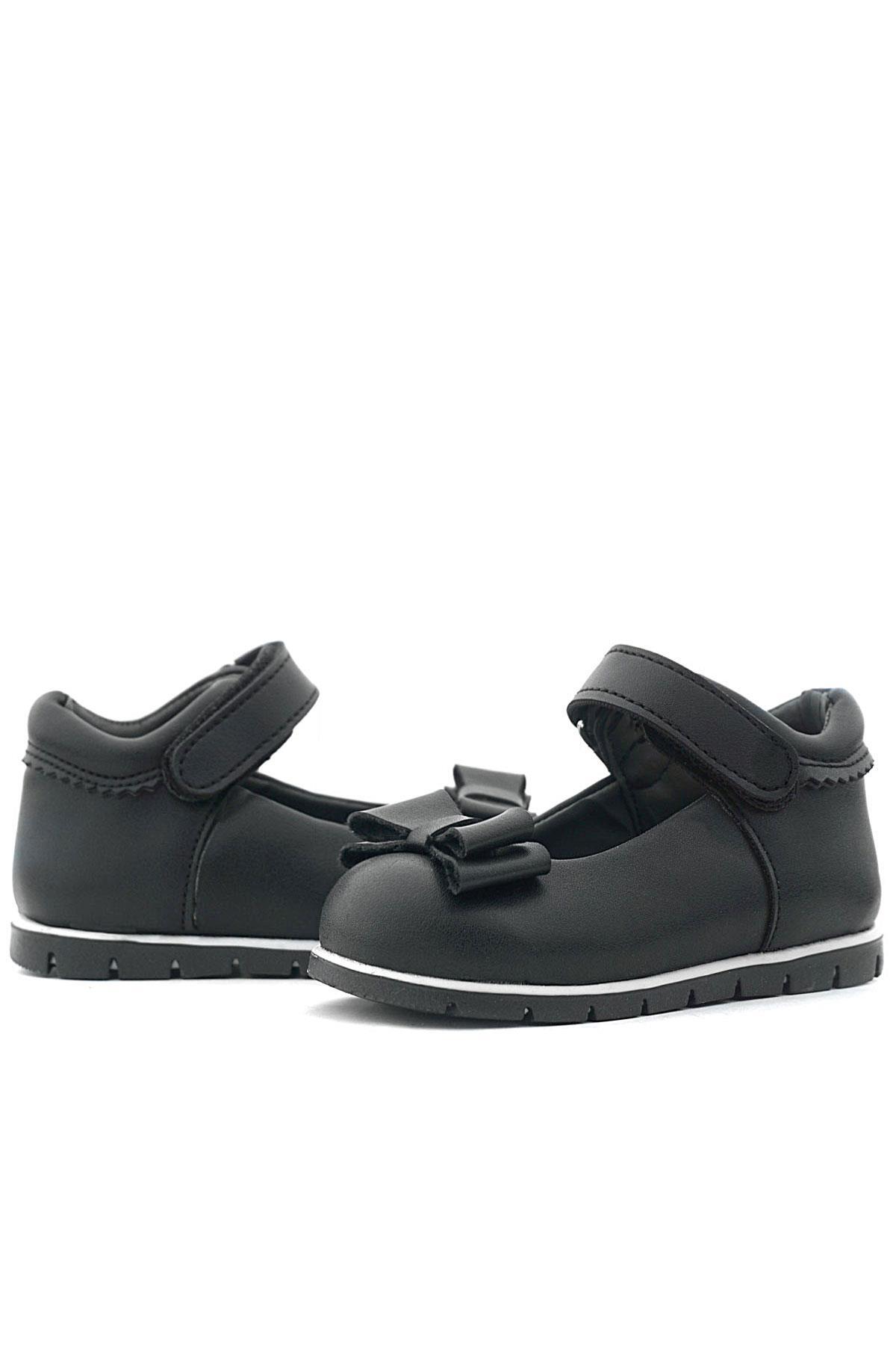 Rakerplus Siyah Mat Fiyonklu Kız Bebek Babet Ayakkabı