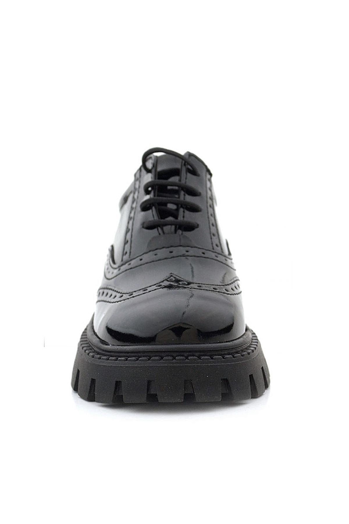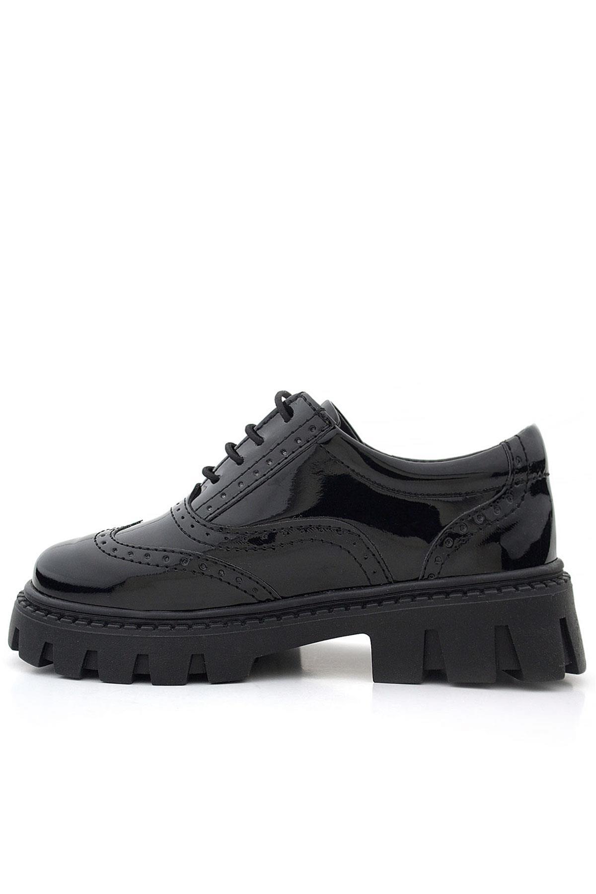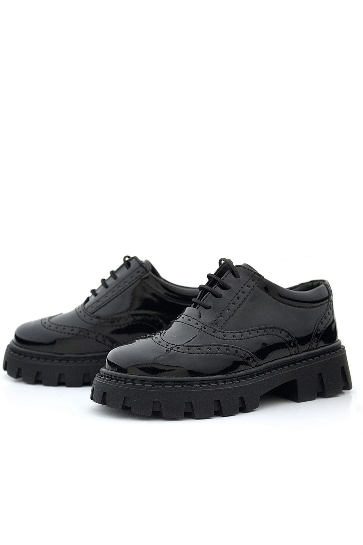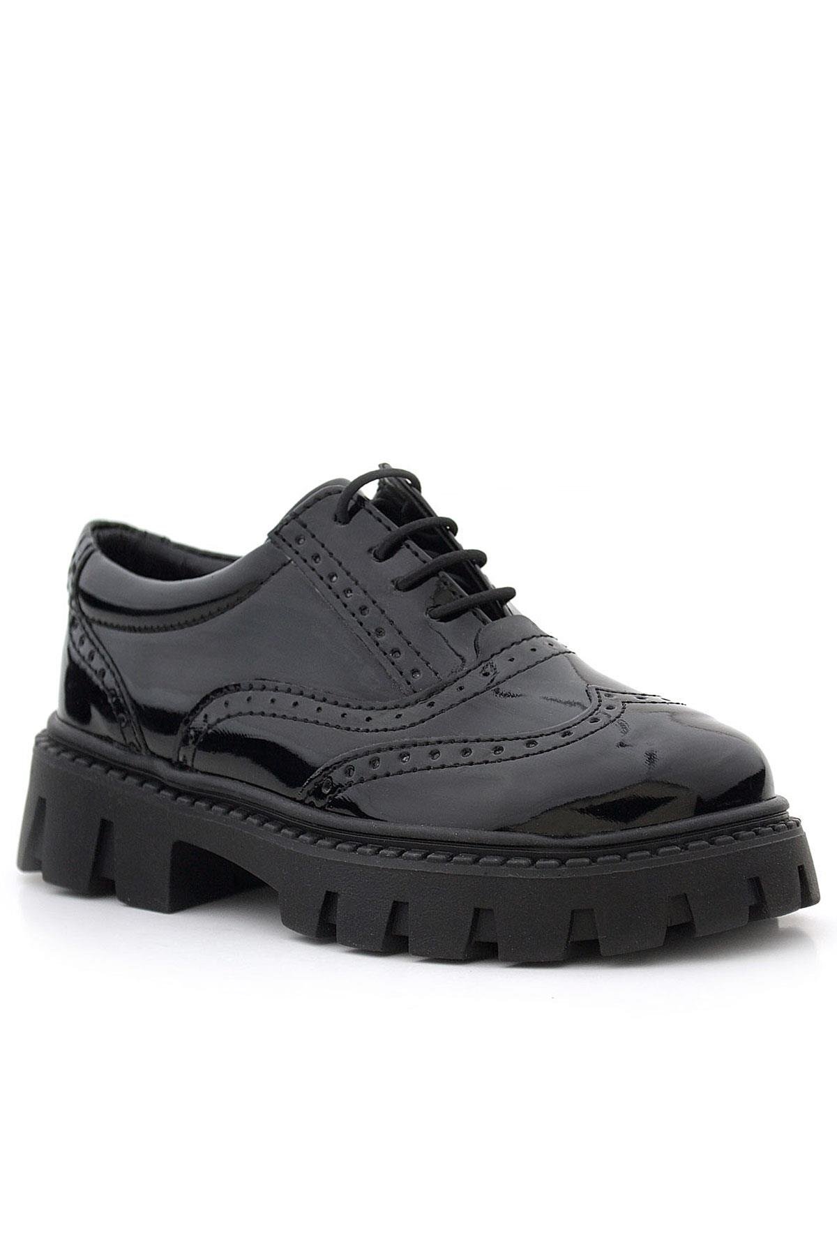 Rakerplus Siyah Rugan Bağcıklı Oxford Kız Çocuk Günlük Ayakkabı