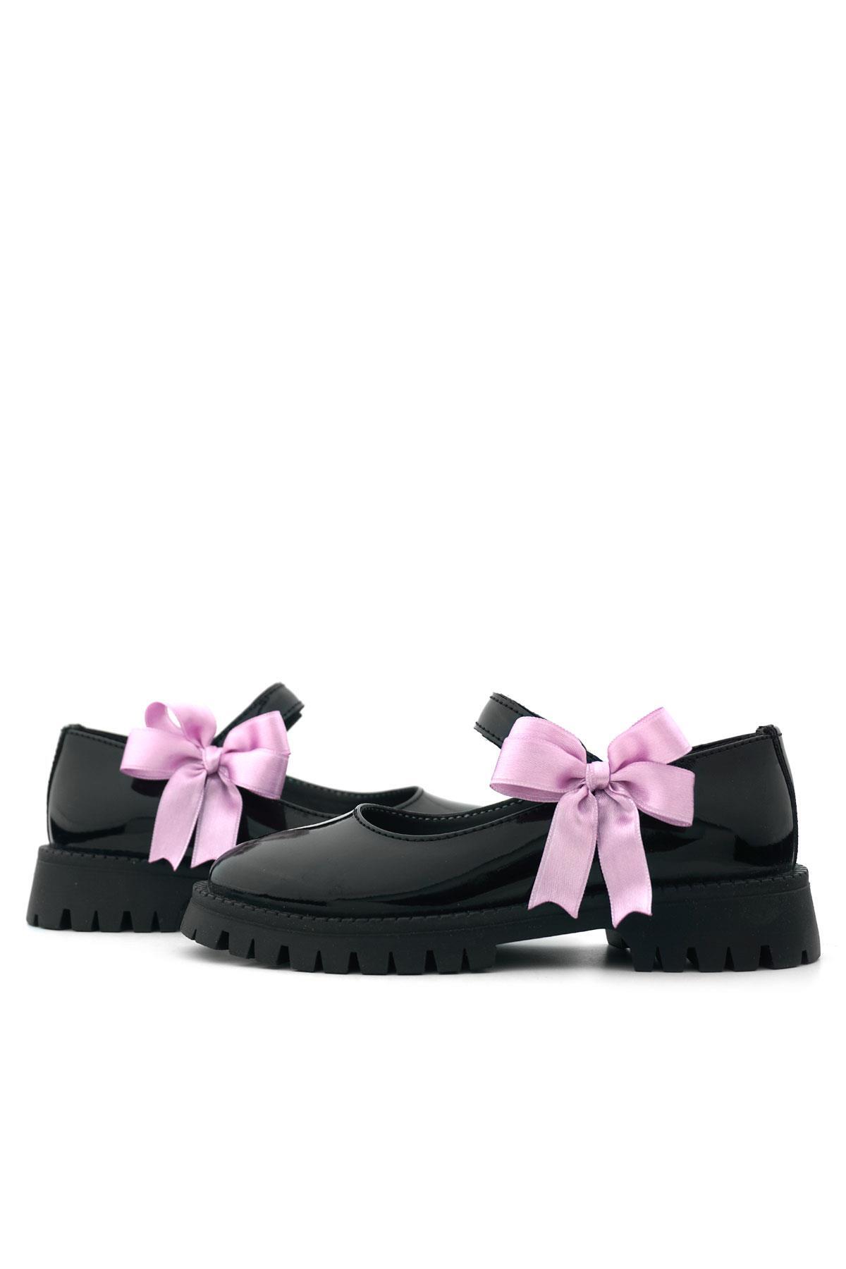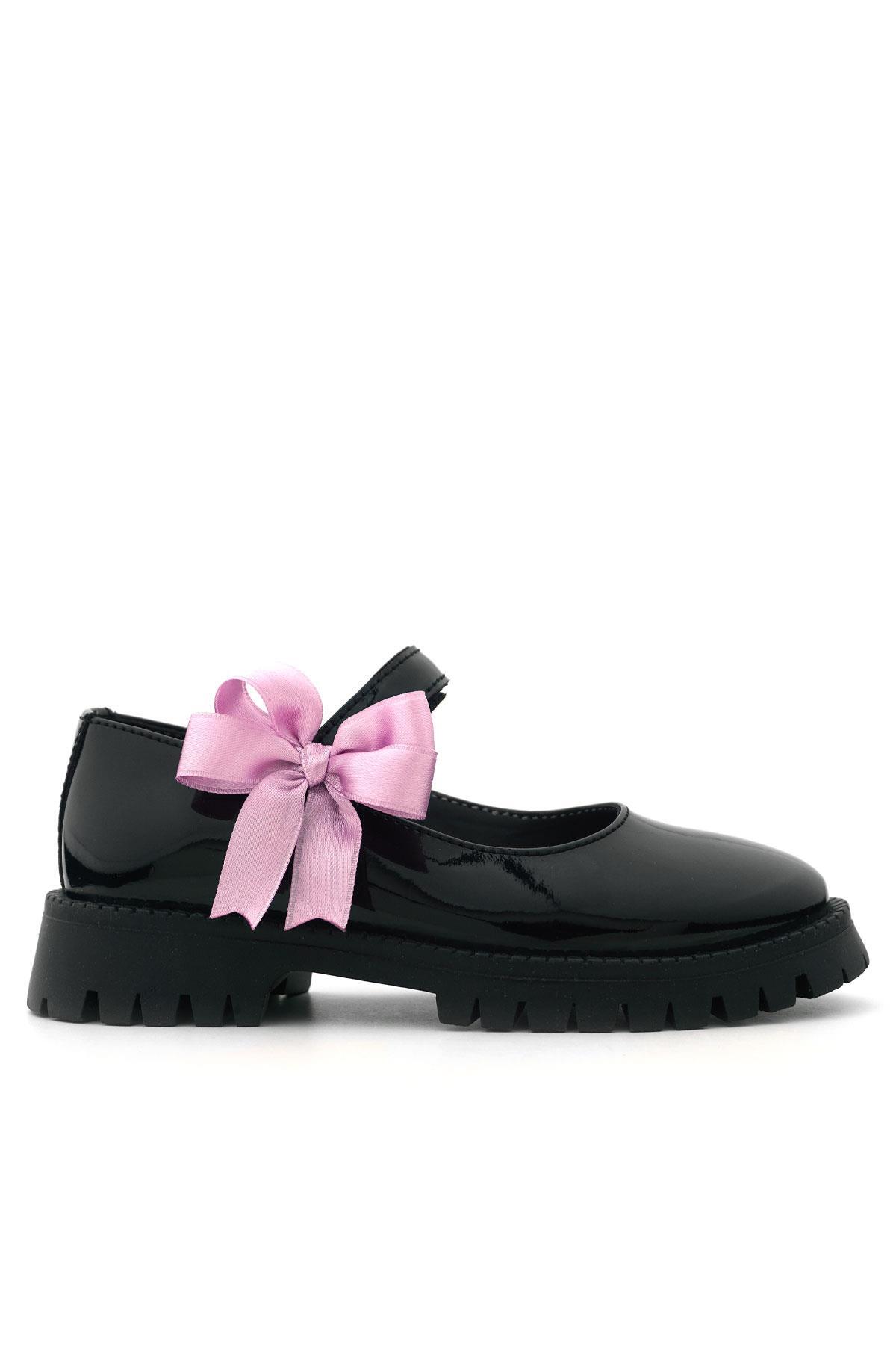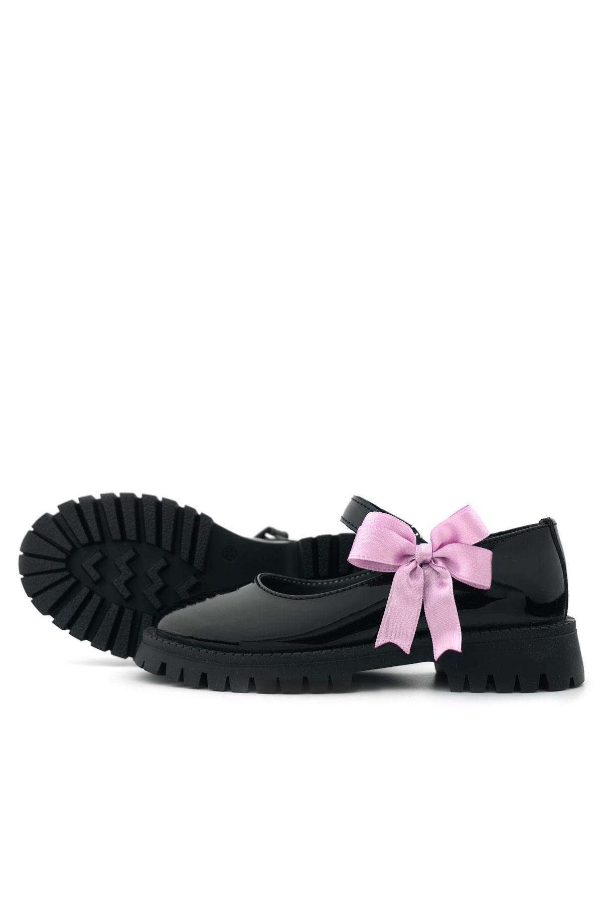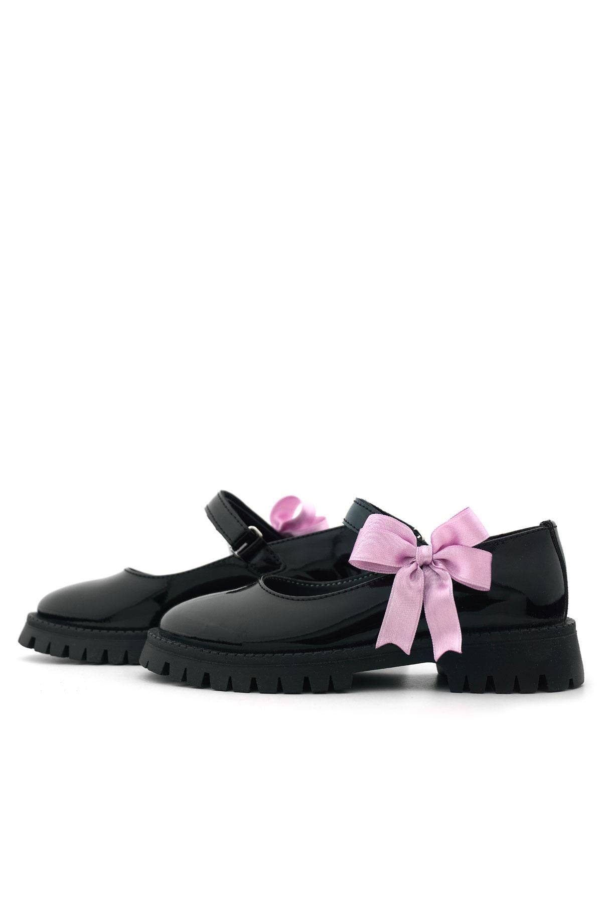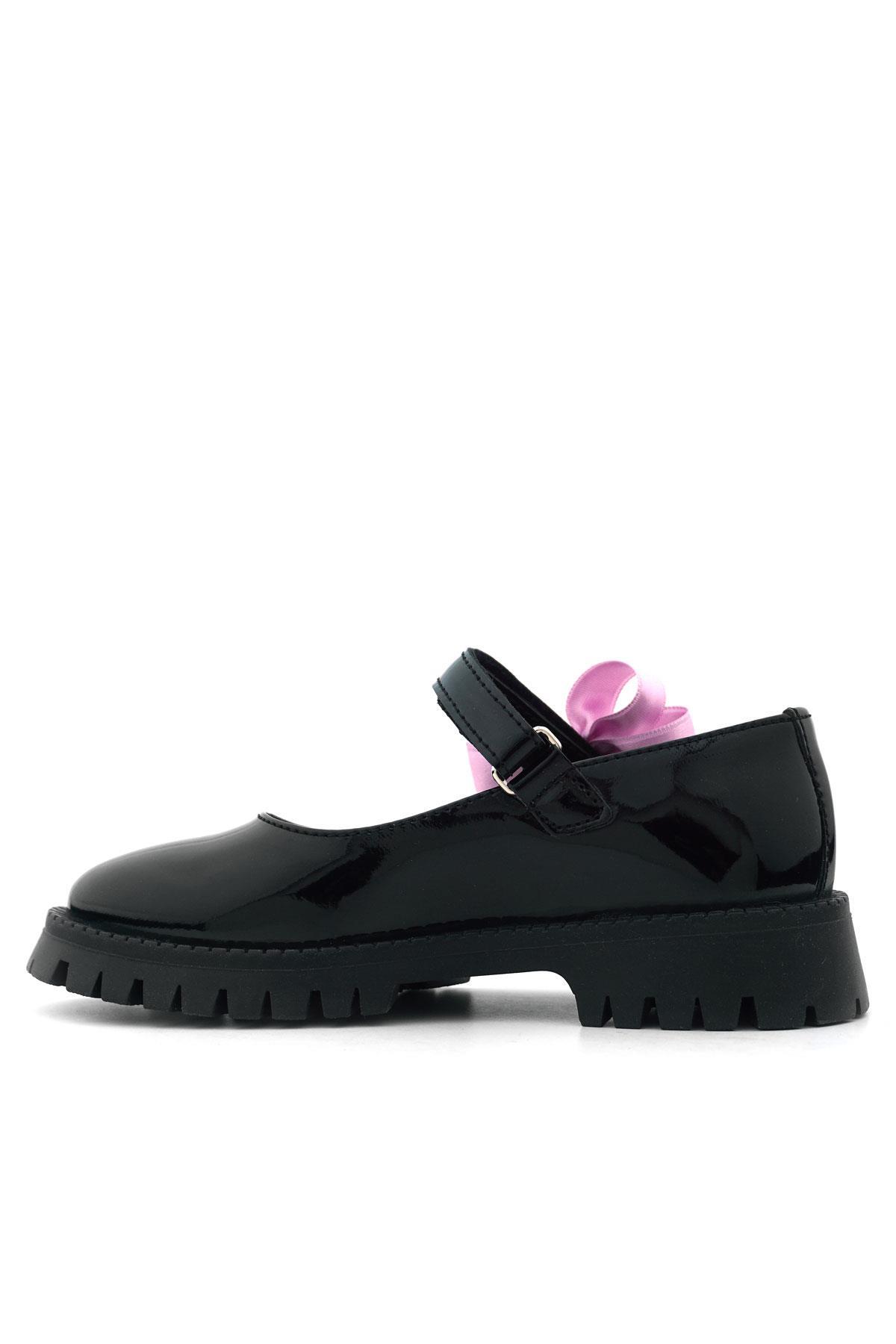 حذاء مدرسي للبنات من راكر بلاس، مصنوع من الجلد الأسود اللامع، مزود بشريط فيلكرو، ونعل سميك
