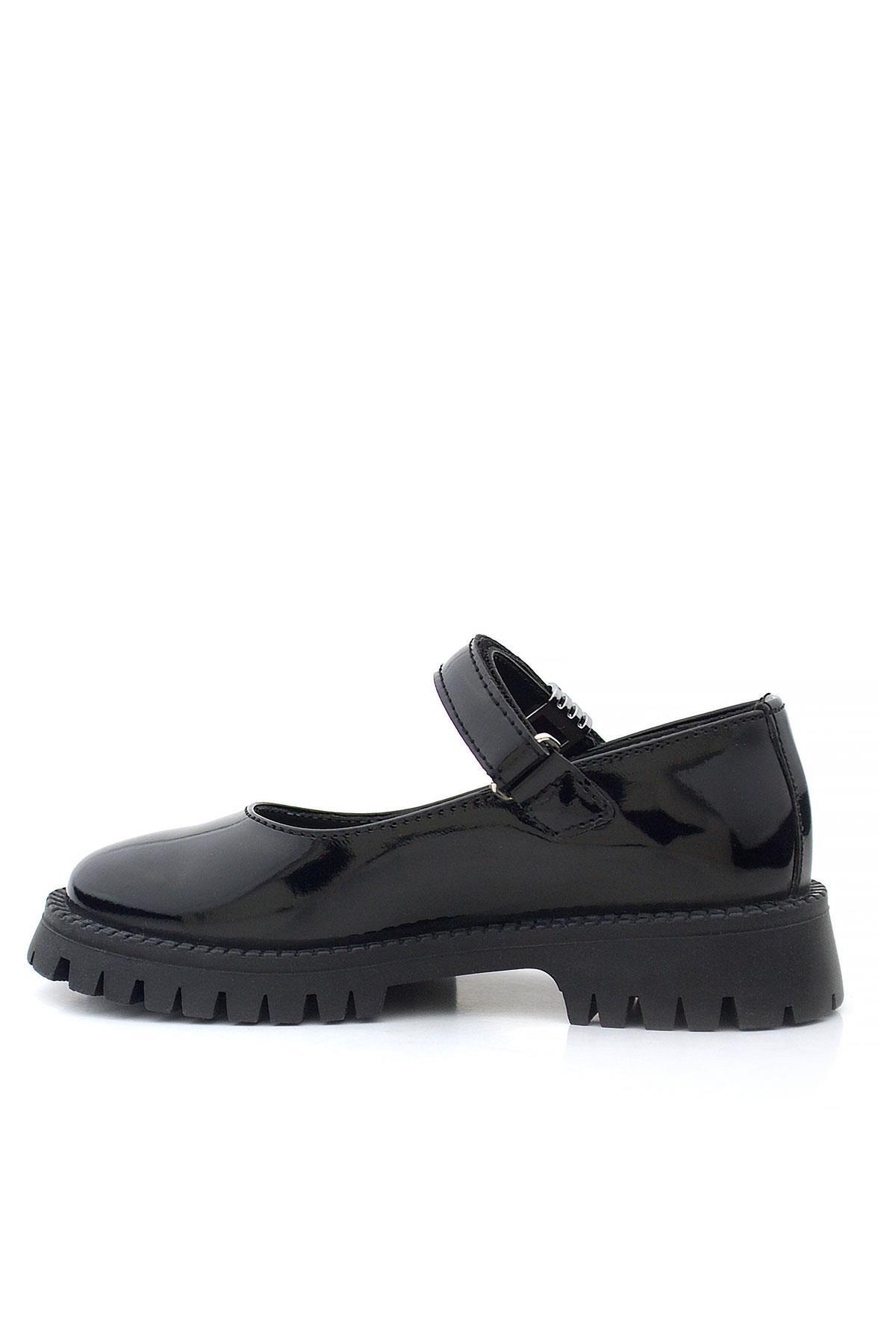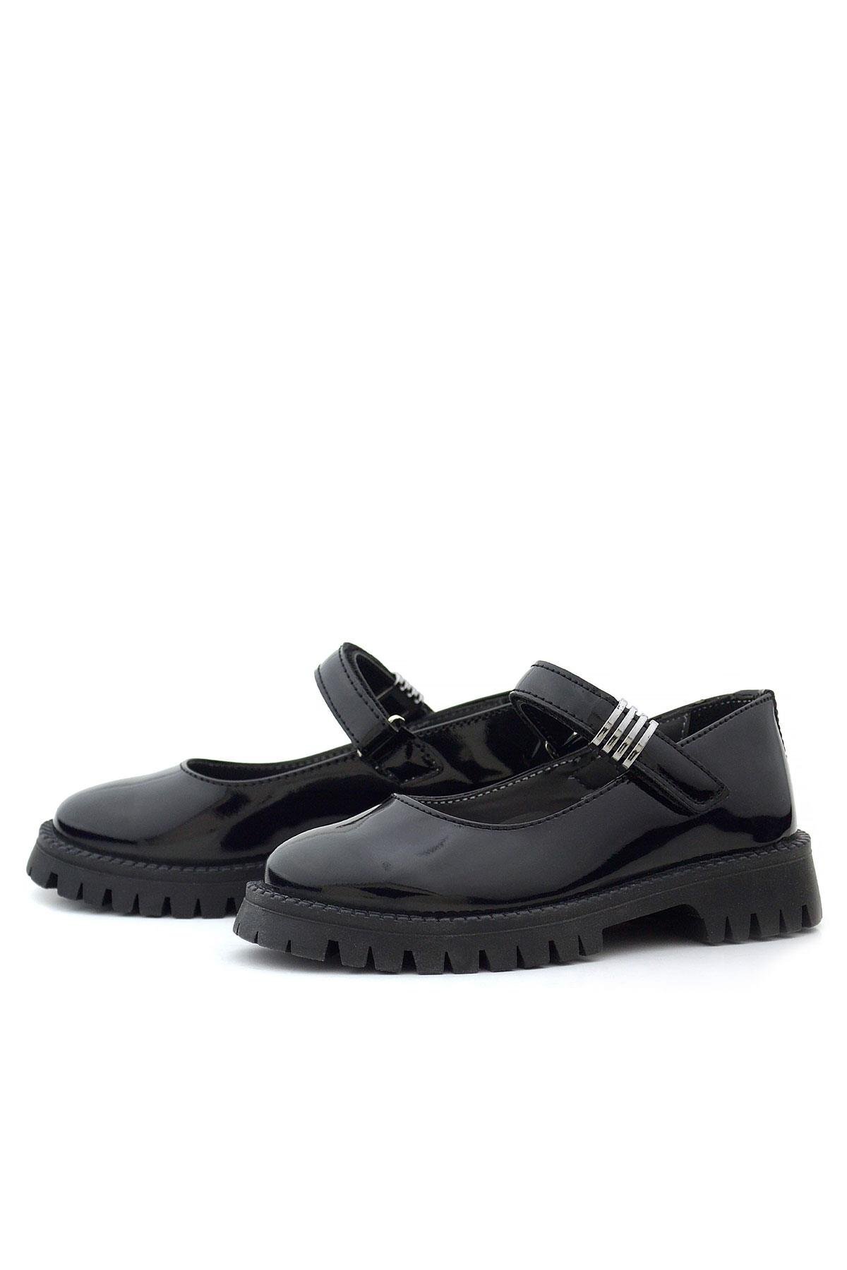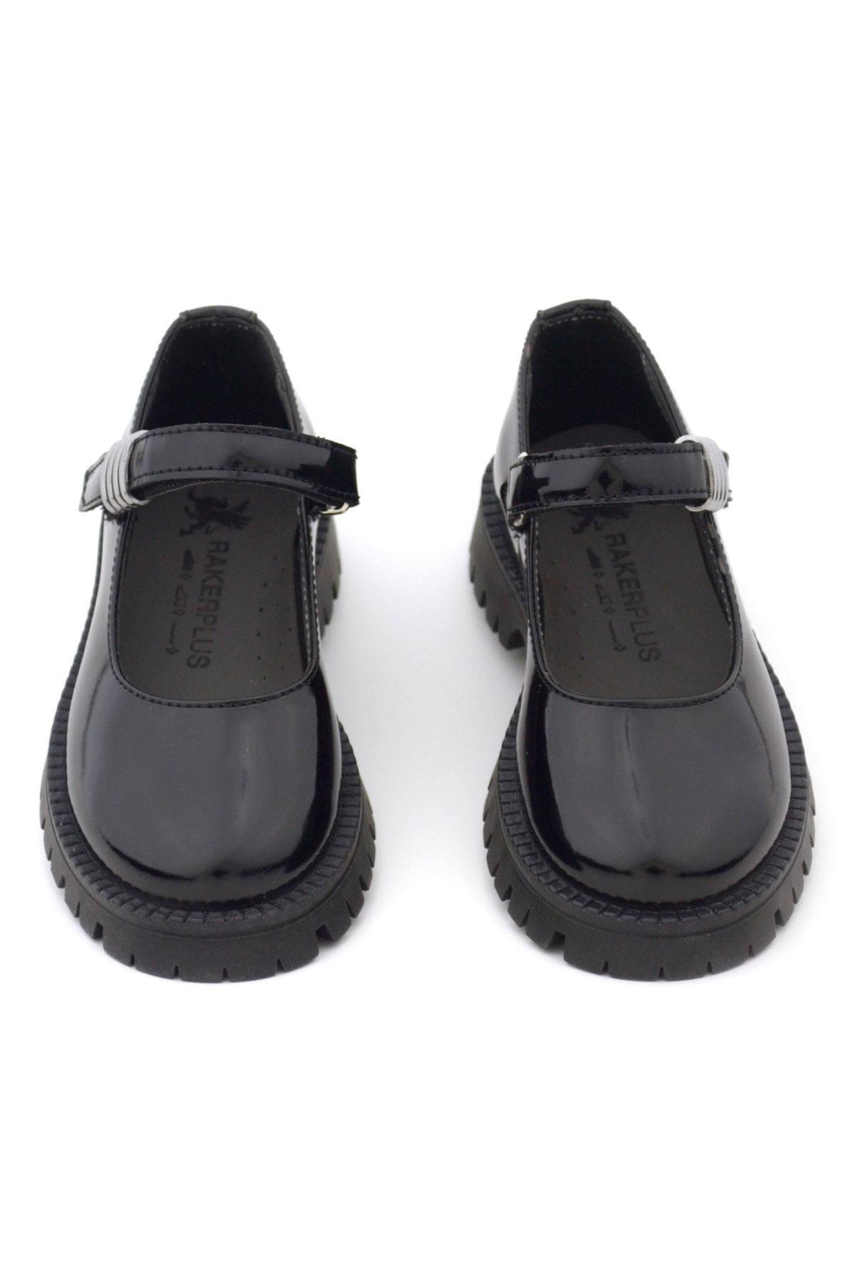 Rakerplus Siyah Rugan Cırtlı Kalın Tabanlı Metal Detaylı Kız Çocuk Okul Ayakkabısı
