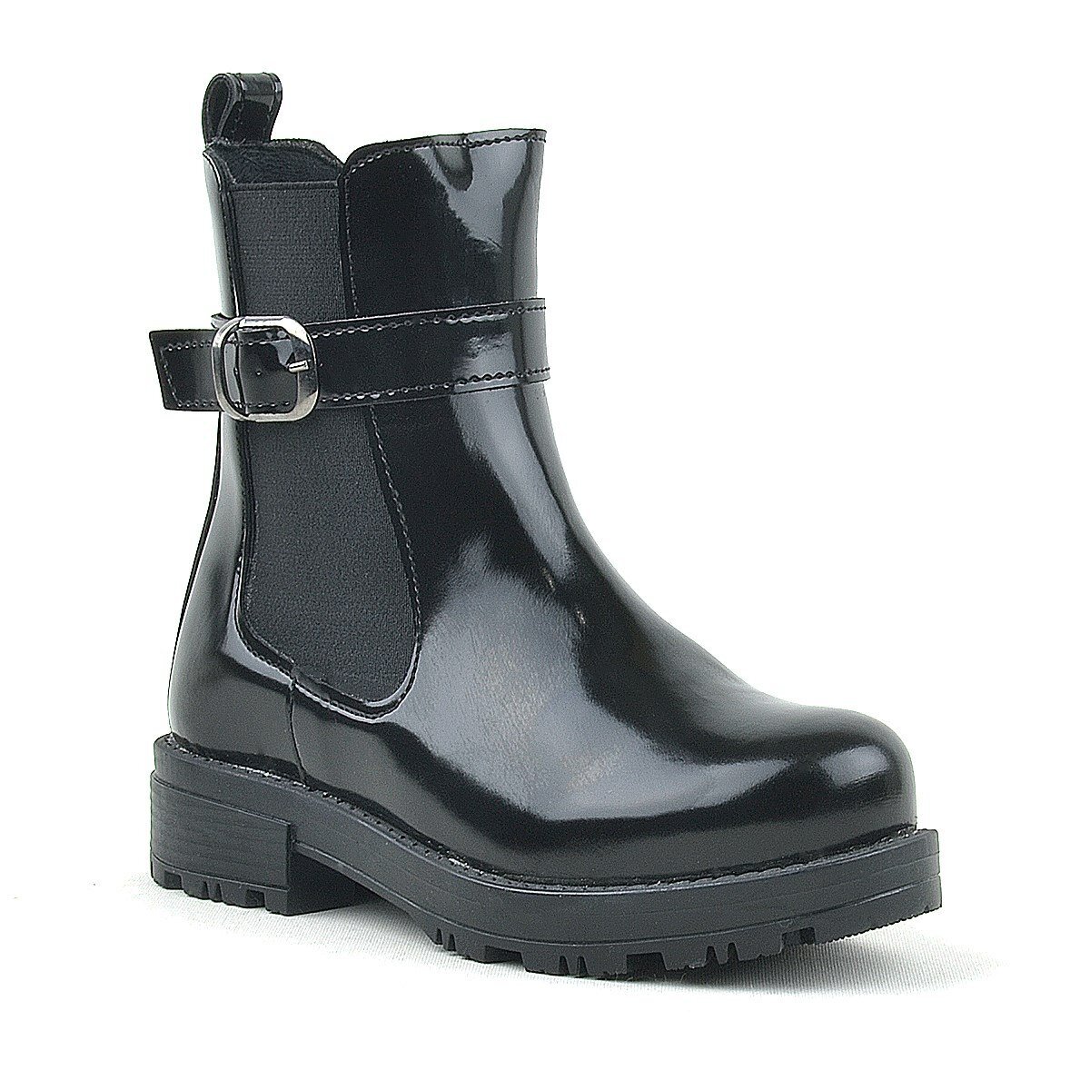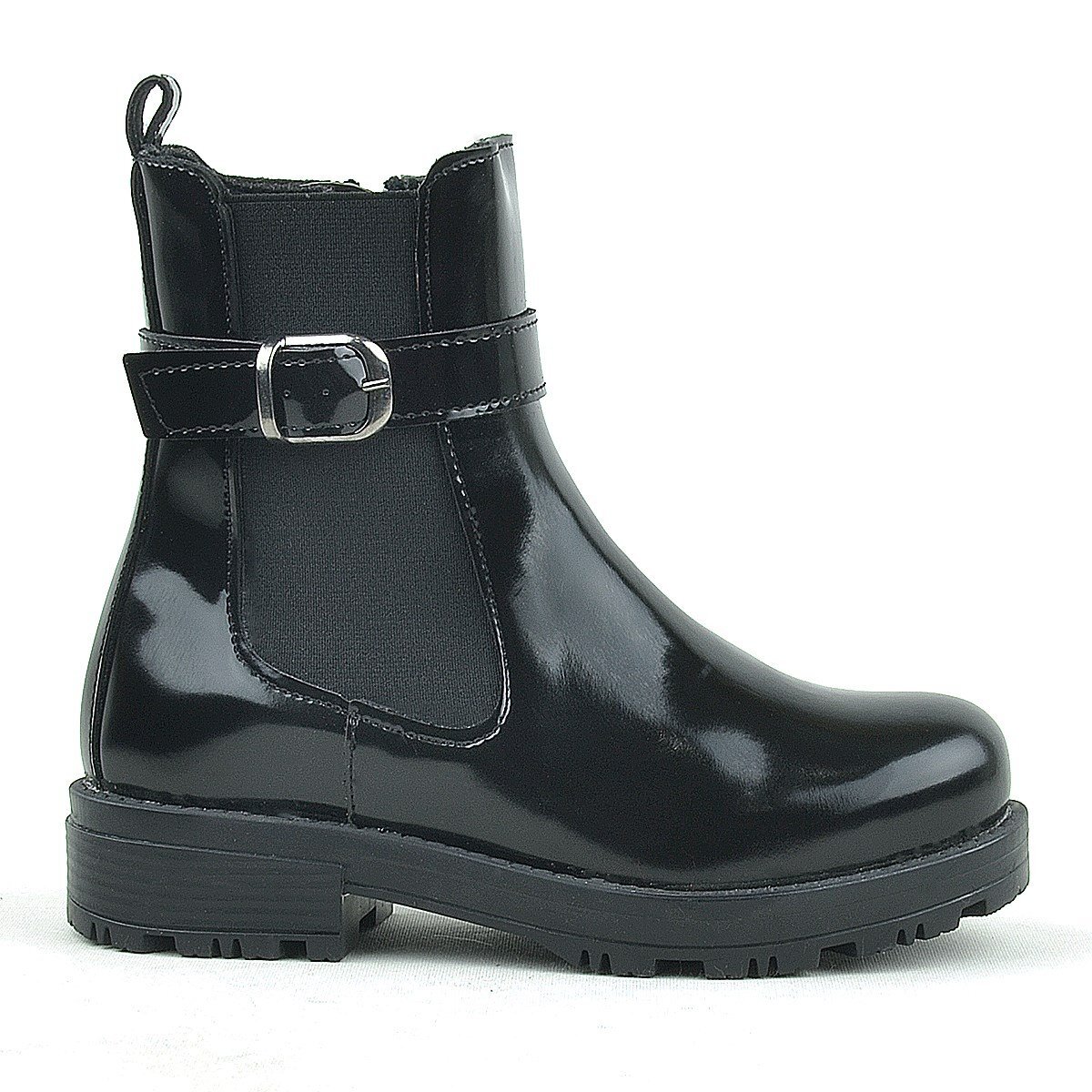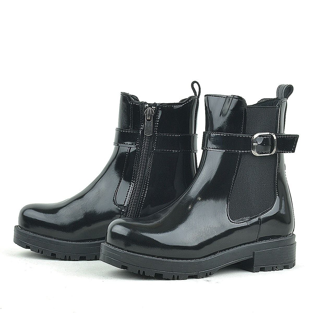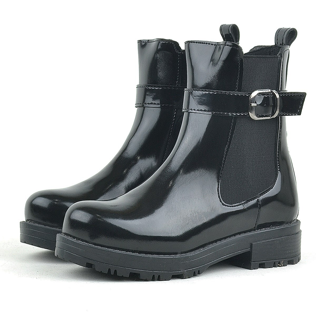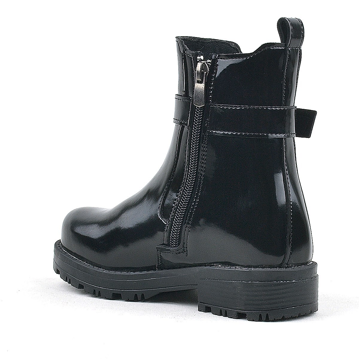 حذاء راكر بلاس أسود مرن من الجلد اللامع للبنات