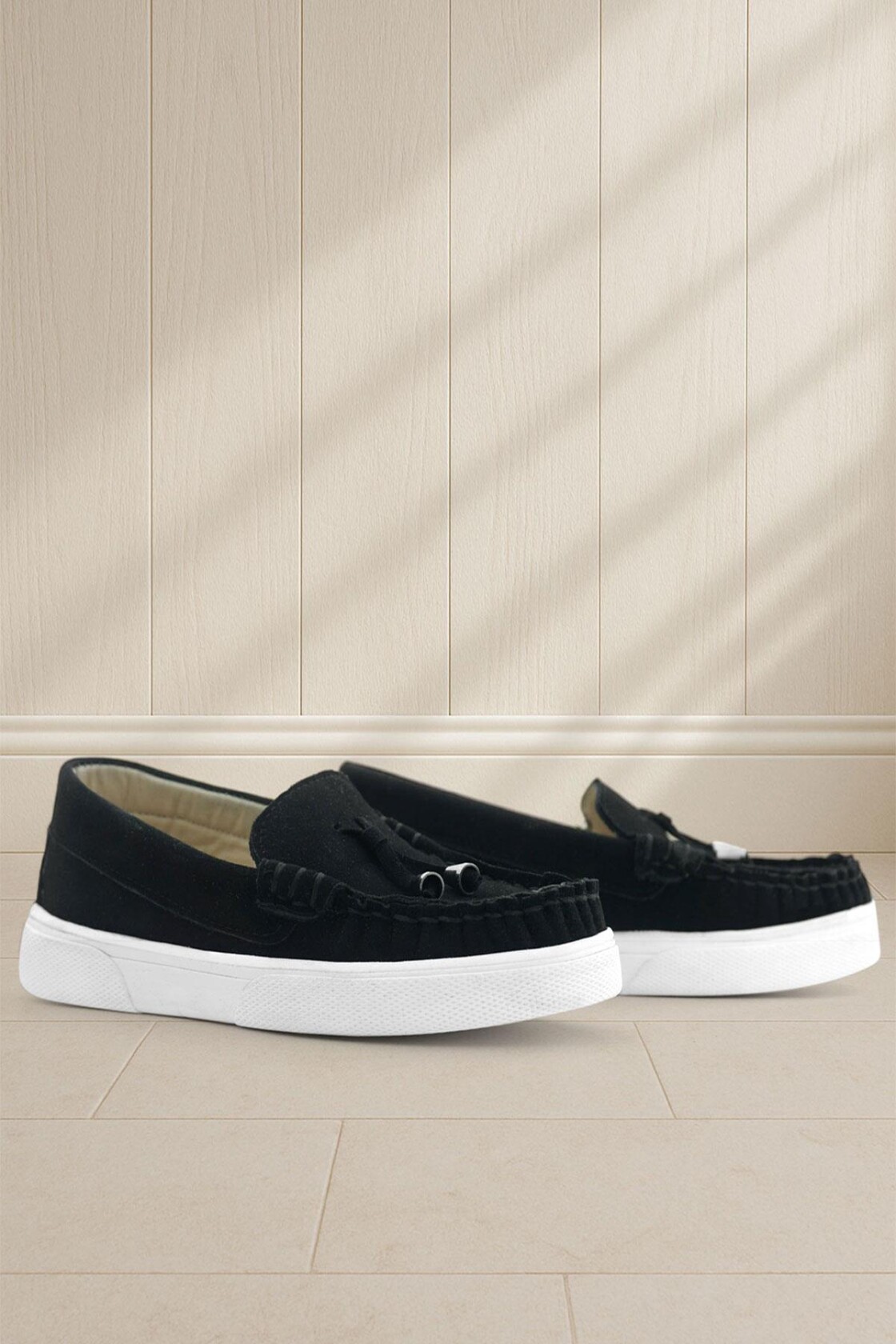 Rakerplus Siyah Süet Ekstra Hafif Çocuk Makosen Ayakkabı