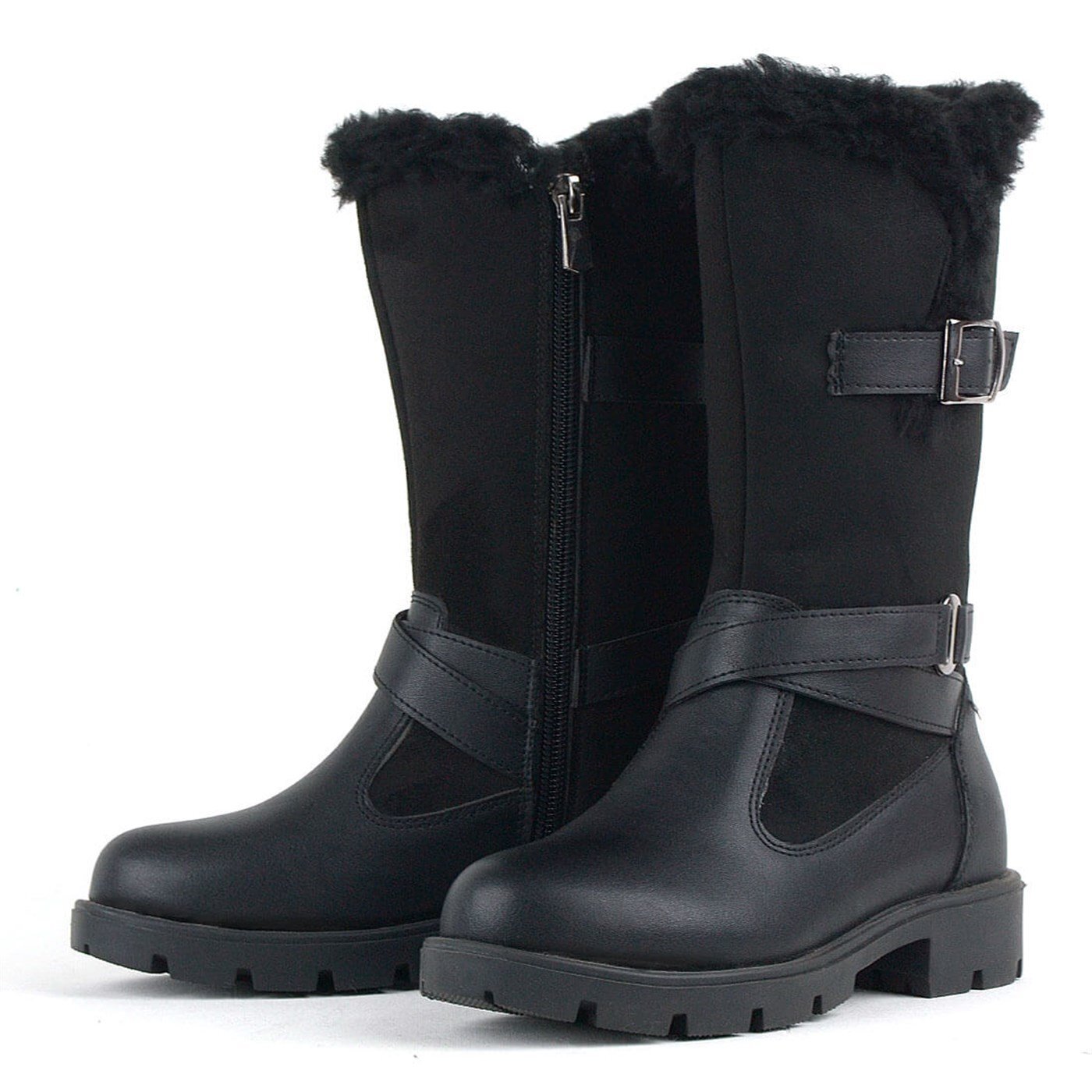 حذاء طويل أسود بسحاب للفتيات من راكر بلاس