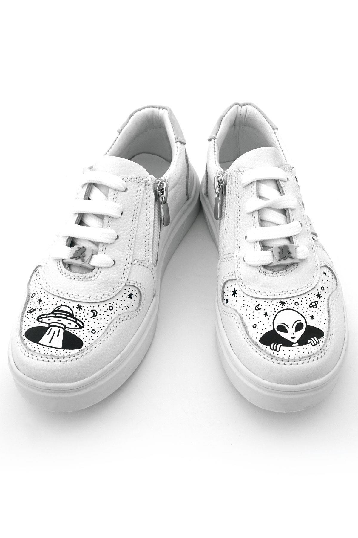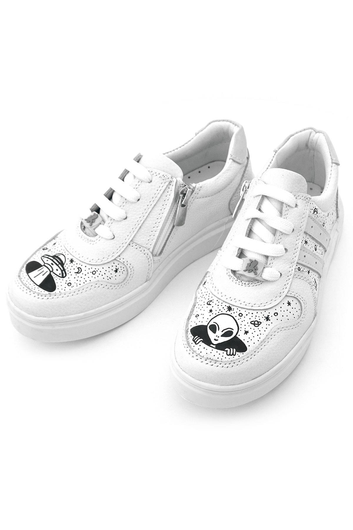 Rakerplus Tbons Özel Tasarım Hakiki Deri Beyaz Bağcıklı Fermuarlı Çocuk Ayakkabı