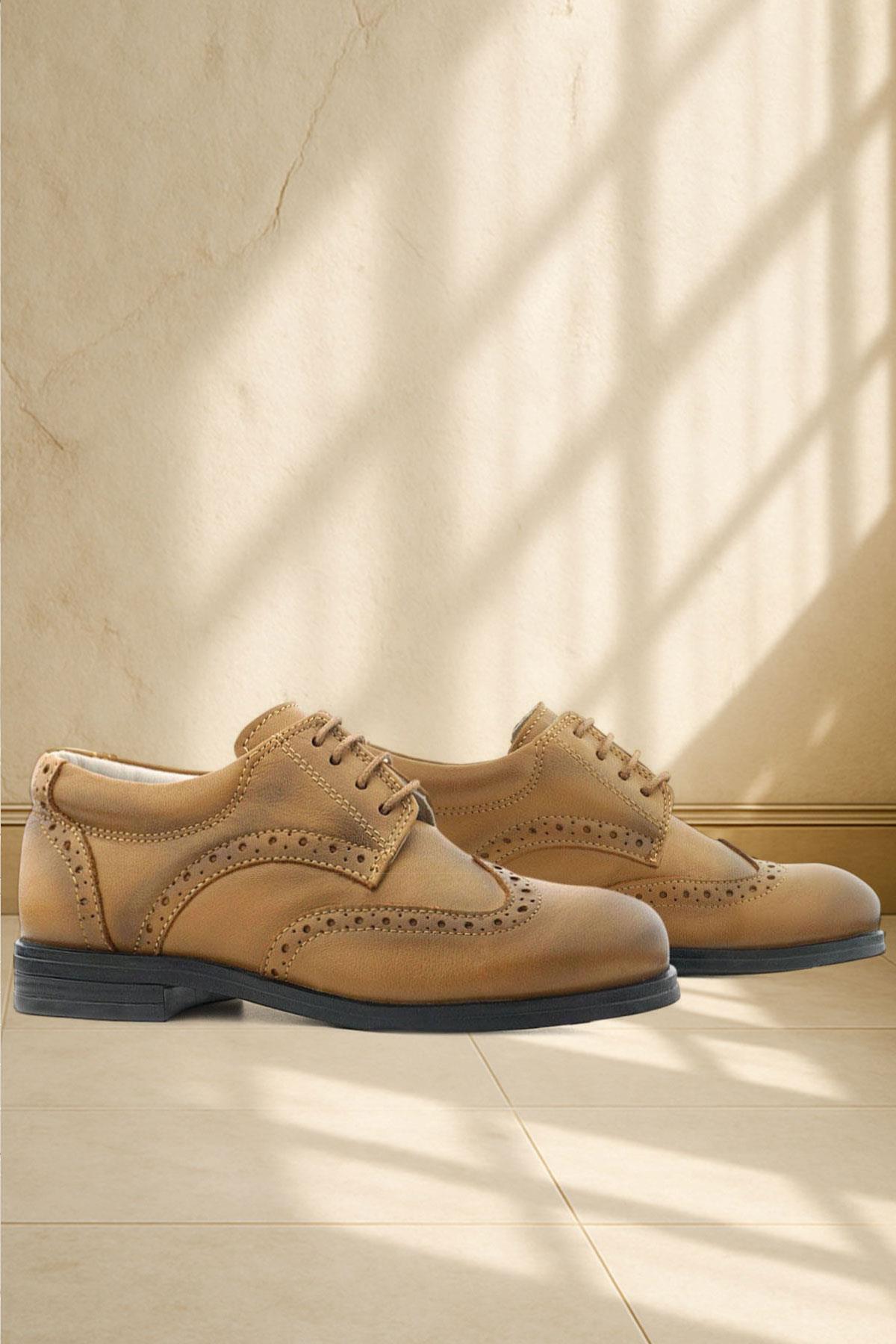 حذاء كلاسيكي للأولاد من الجلد الطبيعي من راكر بلاس تيتان بلون بني فاتح