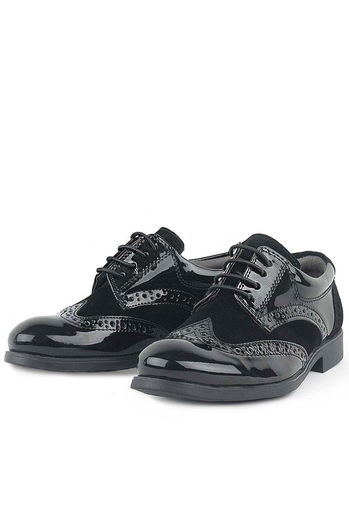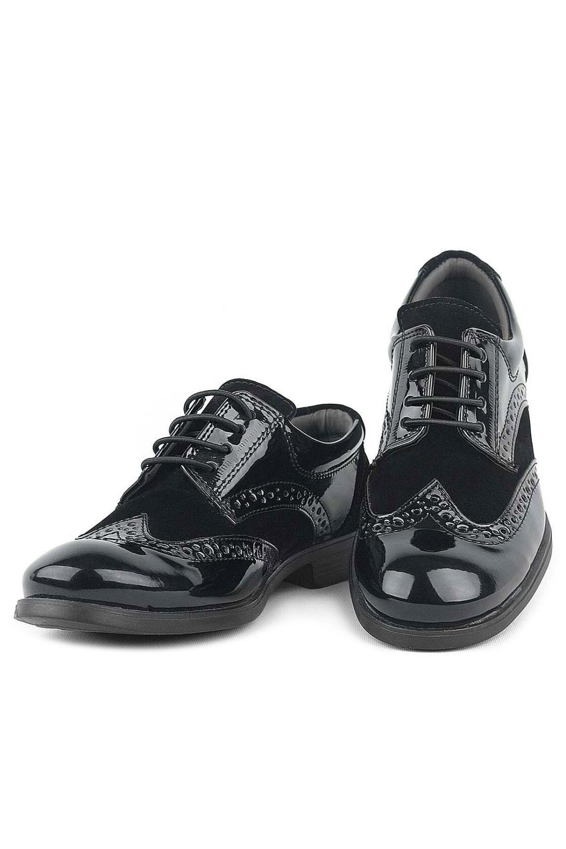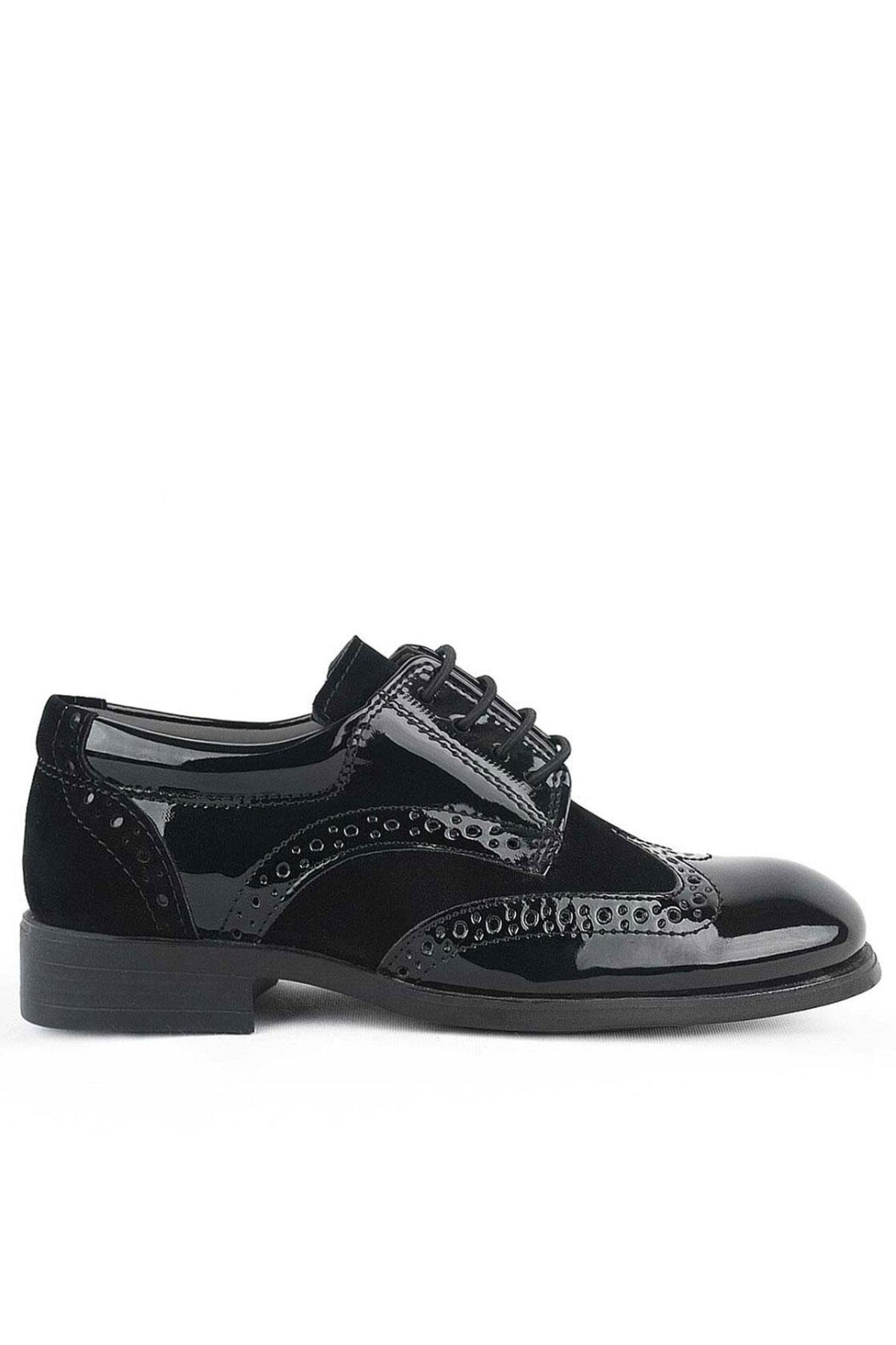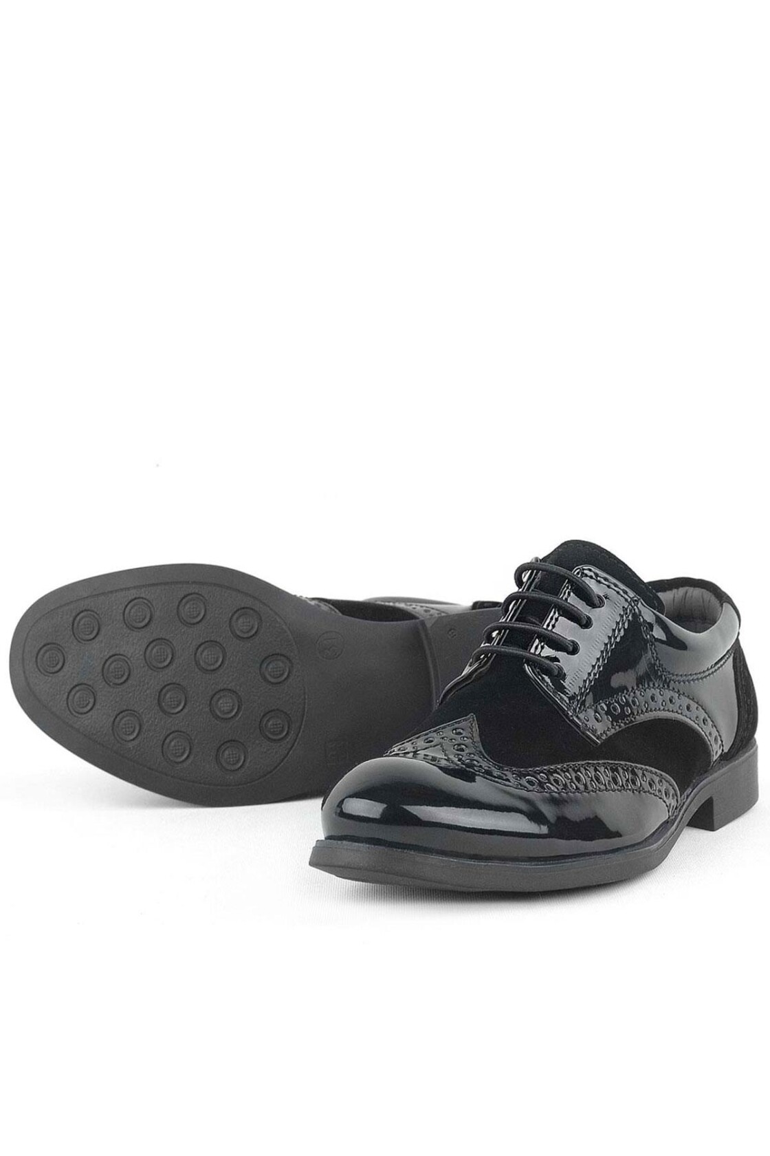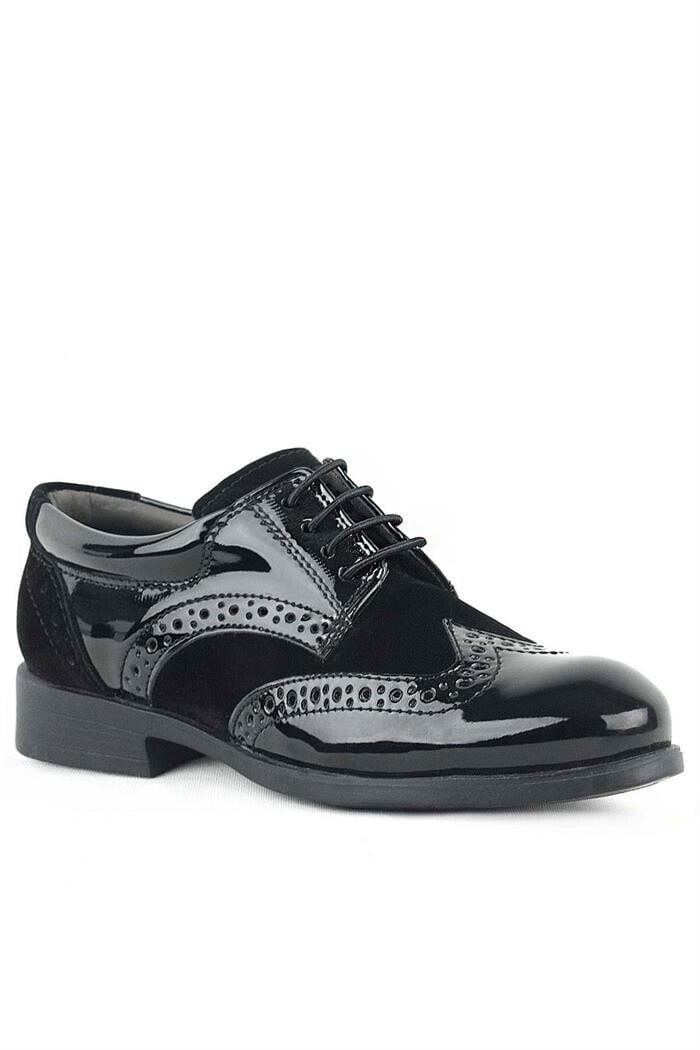 Rakerplus Hakiki Deri Siyah Rugan Bağcıklı Oxford Çocuk Okul Ayakkabısı