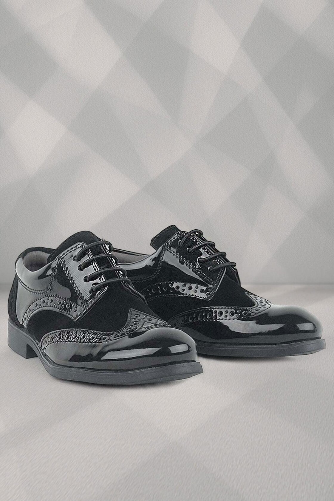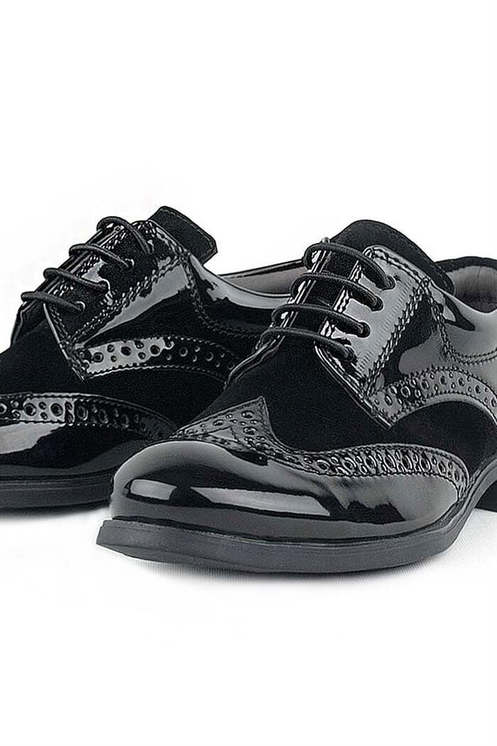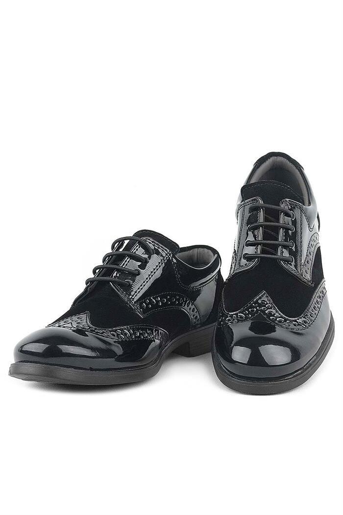 Rakerplus Hidra Hakiki Deri Siyah Rugan Bağcıklı Erkek Çocuk Klasik Ayakkabı