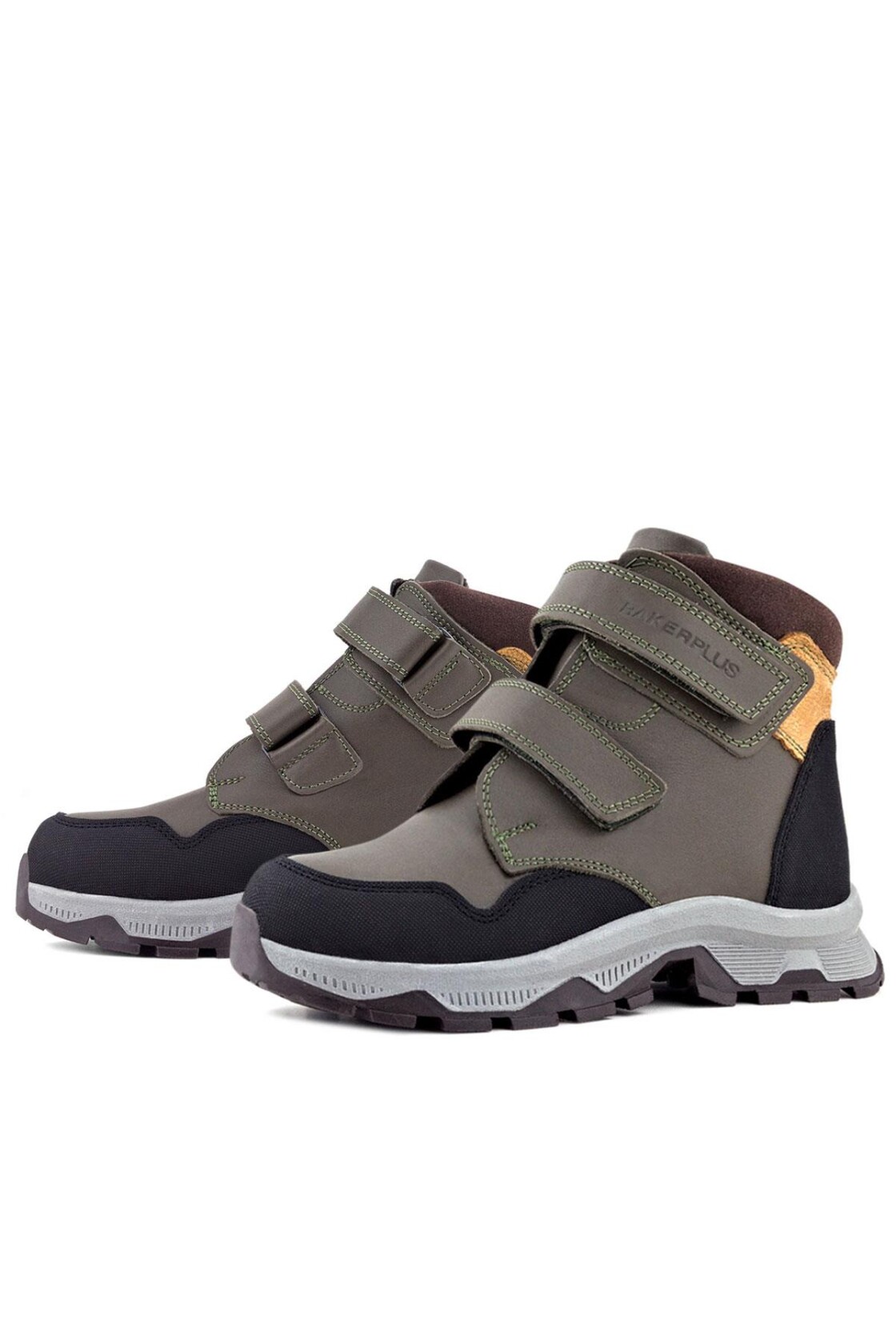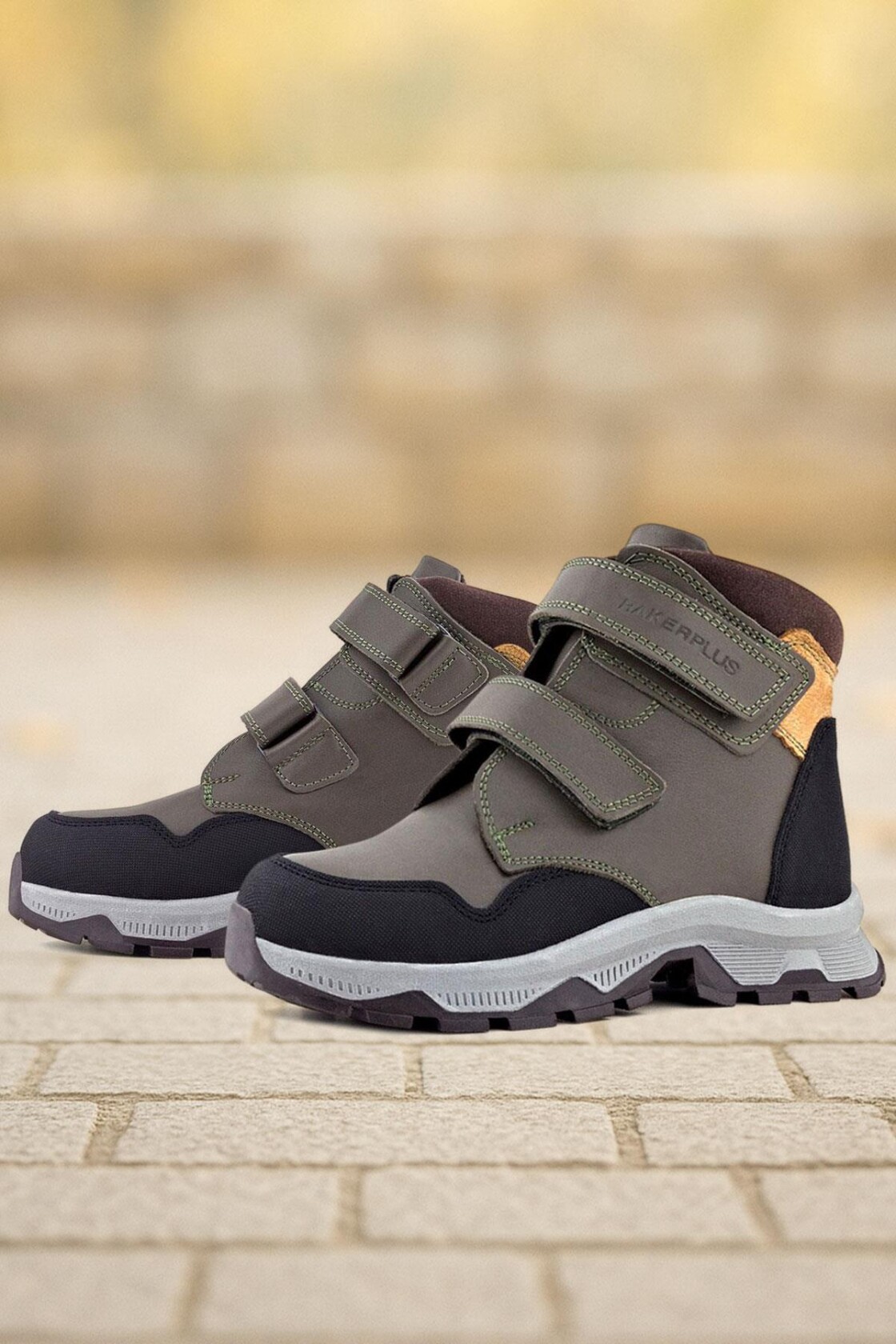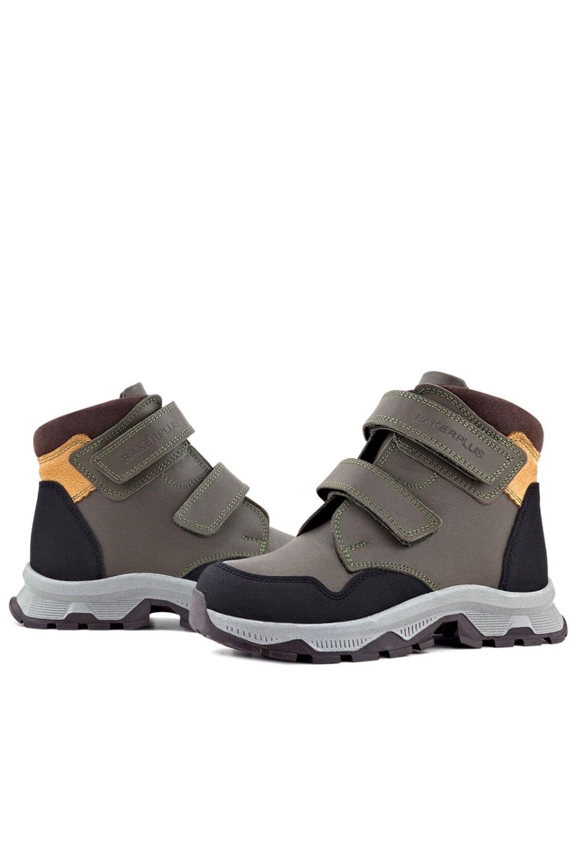 Rakerplus Trekking Hakiki Deri Haki Yeşil Sarı Cırt Cırtlı Erkek Çocuk Bot