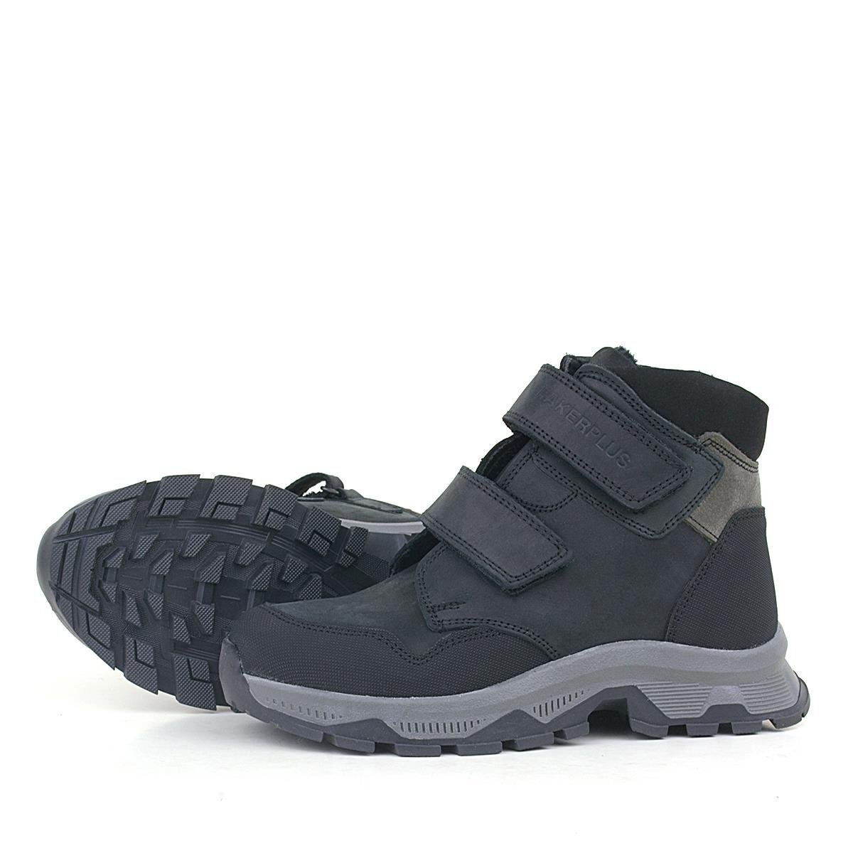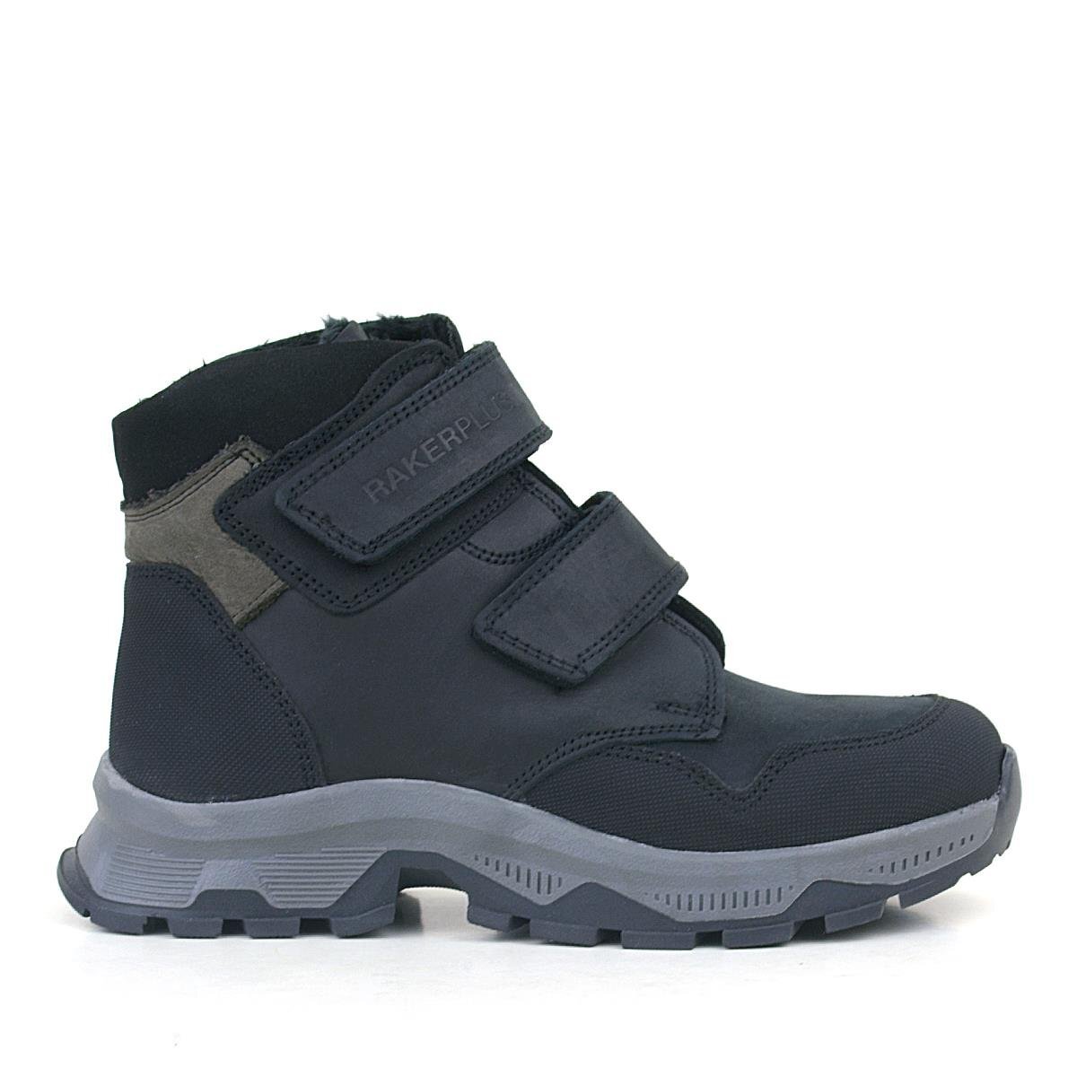 حذاء تريكينج من الجلد الطبيعي للأولاد من راكر بلس، أسود اللون، مزود بشريط فيلكرو