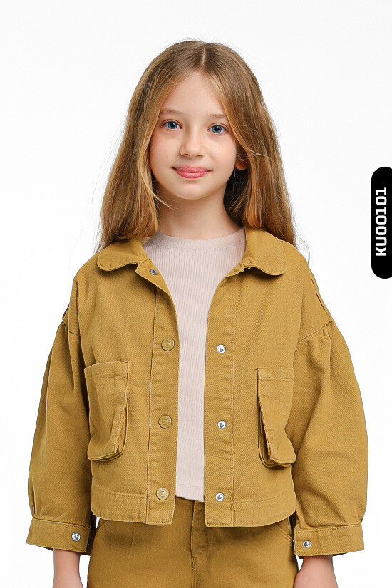 • Sivri Yakalı Çift Cepli Çıt Çıt Kaplamalı Kız Çocuk Gömlek 5-14 Yaş 24216