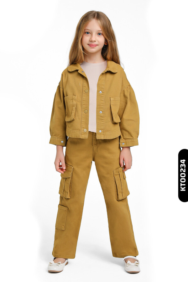 Kargo Cepli Kemerli Düz Paçalı Kız Çocuk Pantolon 5-14 Yaş 2413 Fıstık Yeşil