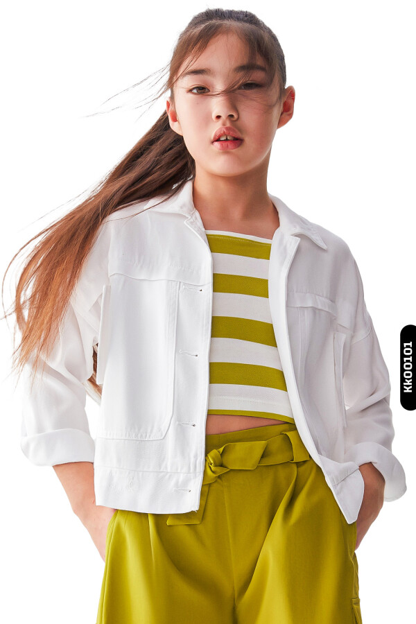 Sivri Yakalı Çift Kapaklı Cepli Düğmeli Kız Çocuk Gömlek 8-14 Yaş 36707 Beyaz