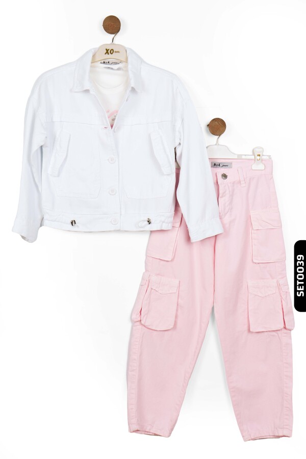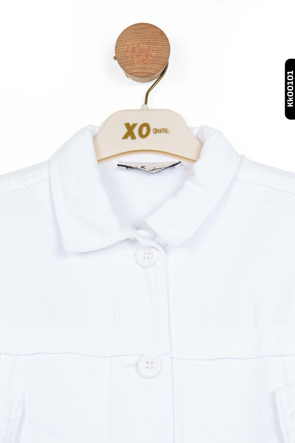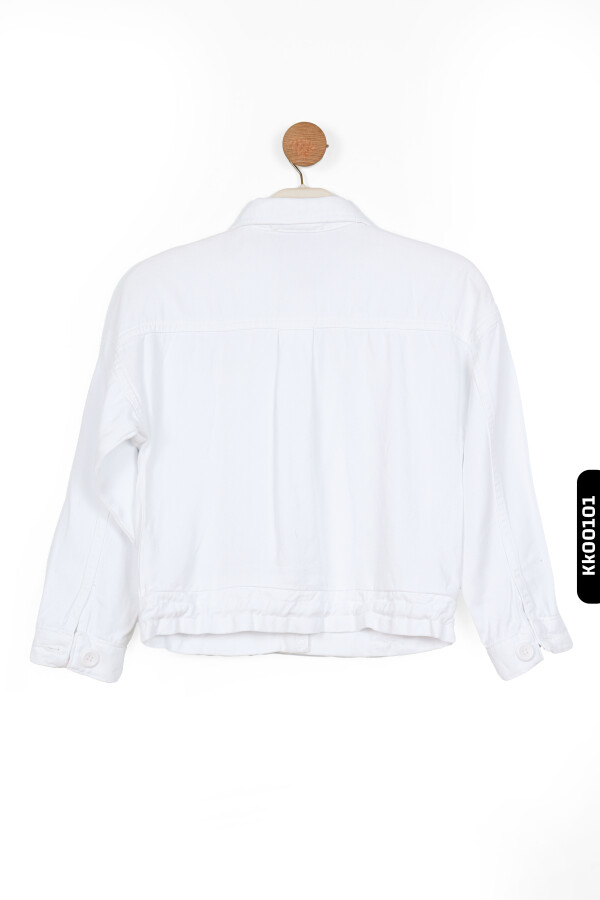 Sivri Yakalı Çift Kapaklı Cepli Düğmeli Kız Çocuk Gömlek 8-14 Yaş 36707 Beyaz - 4