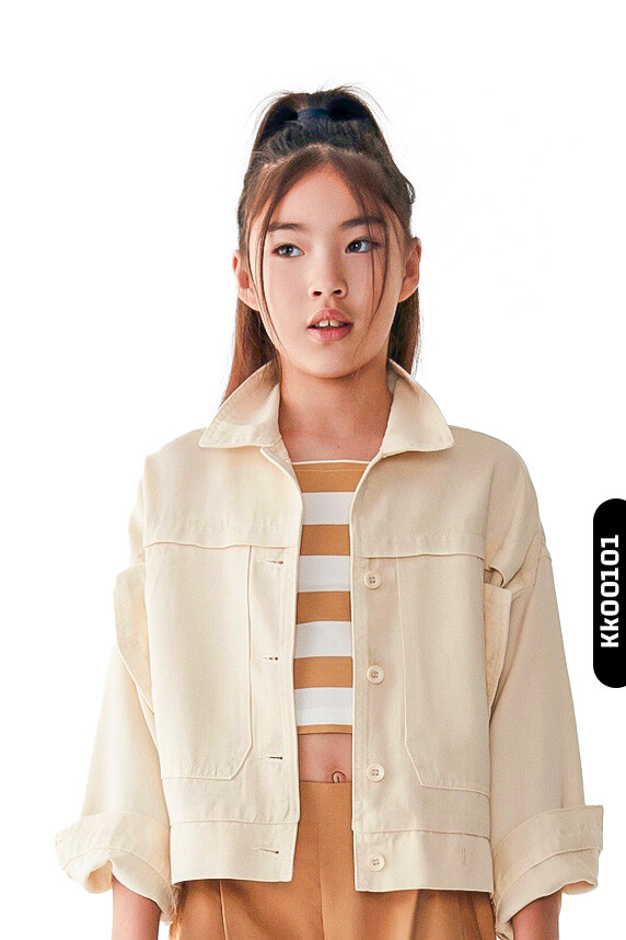 Sivri Yakalı Çift Kapaklı Cepli Düğmeli Kız Çocuk Gömlek 8-14 Yaş 36707 Krem