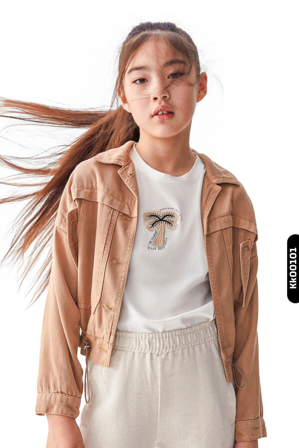 Sivri Yakalı Çift Kapaklı Cepli Düğmeli Kız Çocuk Gömlek 8-14 Yaş 36707 Vizon - 1