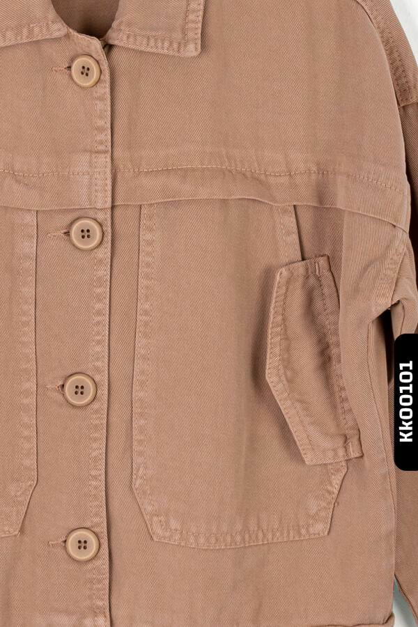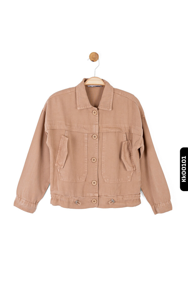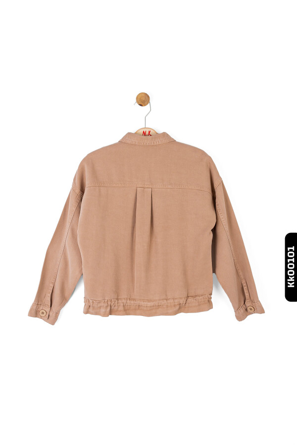 Sivri Yakalı Çift Kapaklı Cepli Düğmeli Kız Çocuk Gömlek 8-14 Yaş 36707 Vizon - 4