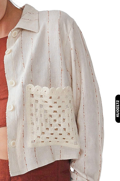 • Sivri Yakalı Çizgili Aplikeli Yan Cepli Düğmeli Kız Çocuk Gömlek 8-14 Yaş 36338