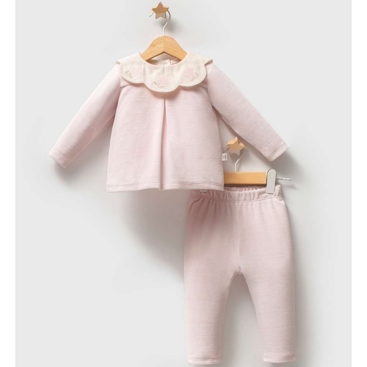 Tongs Baby Etamine 2'li Takım 5681Tongs, miniklerin hassas ciltleri için özenle seçilmiş kumaşlardan üretilmiş ürünleriyle hem şıklığı hem de konforu buluşturuyor. Doğal dokular, nefes alabilen kumaşlar ve yumuşak dikiş detaylarıyla bebeklerin hareketini kısıtlamadan rahat bir kullanım sunar. Geniş ürün yelpazesi sayesinde şık takım elbiselerden günlük rahat takımlara, zıbından elbiseye kadar pek çok seçeneği barındırır. Renk ve desen seçenekleri oldukça çeşitli; belirtmediğiniz takdirde stok durumuna göre farklı alternatiflerle gönderim sağlanabilir. Yıkama Talimatı: Hassas programda, yaklaşık 30°C civarında düşük sıcaklıkta yıkamanız önerilir. Ağartıcı veya agresif kimyasal içeren deterjanlardan kaçınınız. Renklerin korunması için benzer renklerle birlikte yıkamanız tavsiye edilir. Kurutmada yüksek ısıdan uzak durunuz; tercihen doğal kurutma veya düşük ısı seçeneği tercih edilmelidir. Ütü gerekliyse düşük ısıda ve nazikçe uygulanmalıdır. Tongs ile her gününüzde küçük mutluluklar, minik adımlarda büyük güven ve stil…