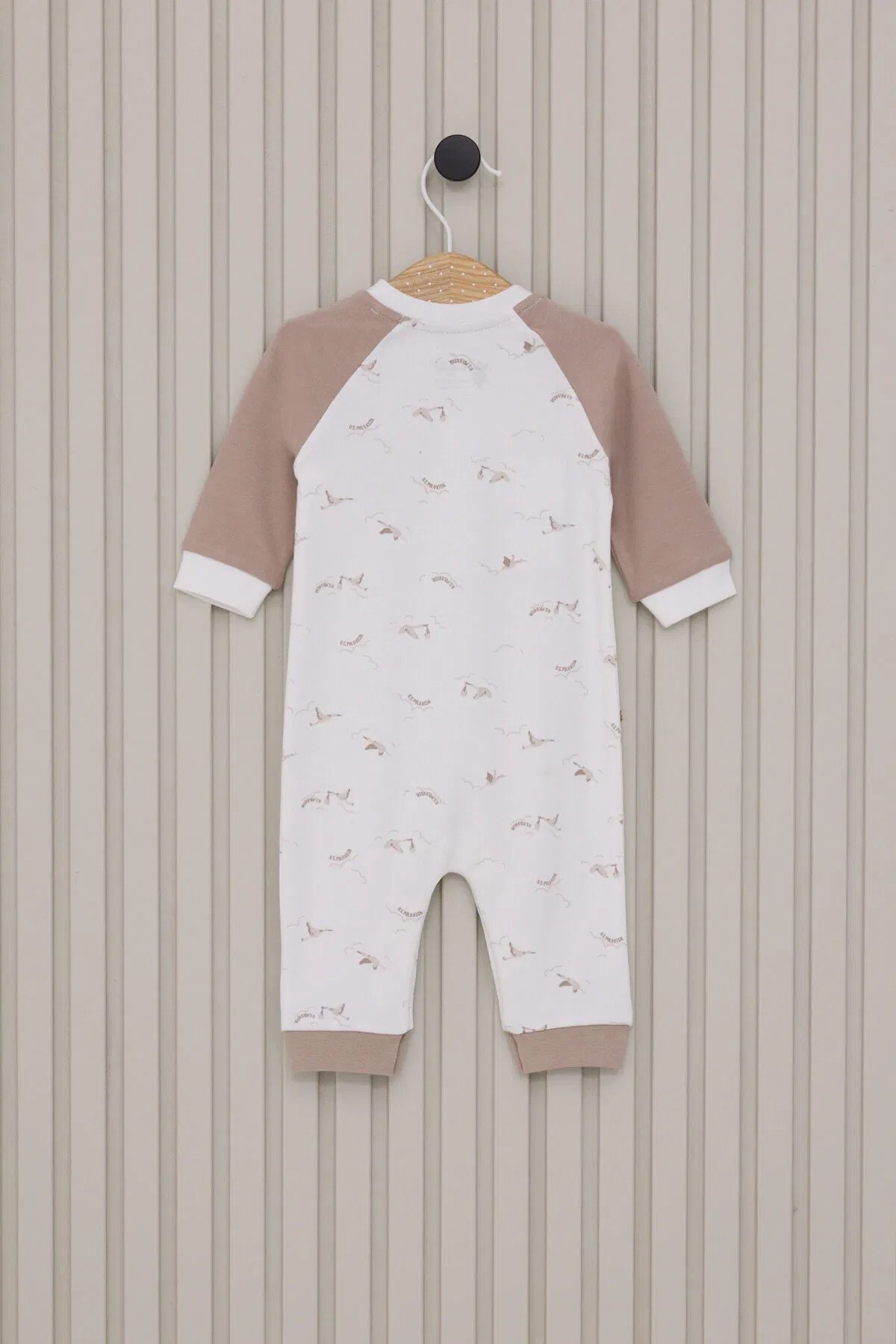 بدلة أطفال أولاد من يو إس بولو بأكمام طويلة وبدون أقدام، لون كريمي، موديل USB2020