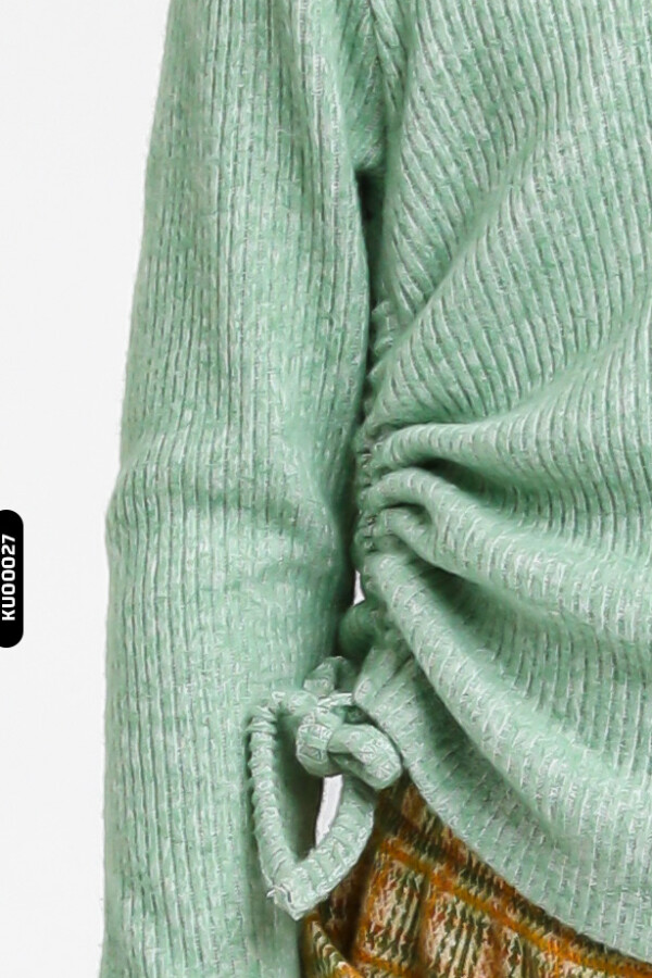 - ياقة دائرية مع أكمام طويلة وتفاصيل أربطة